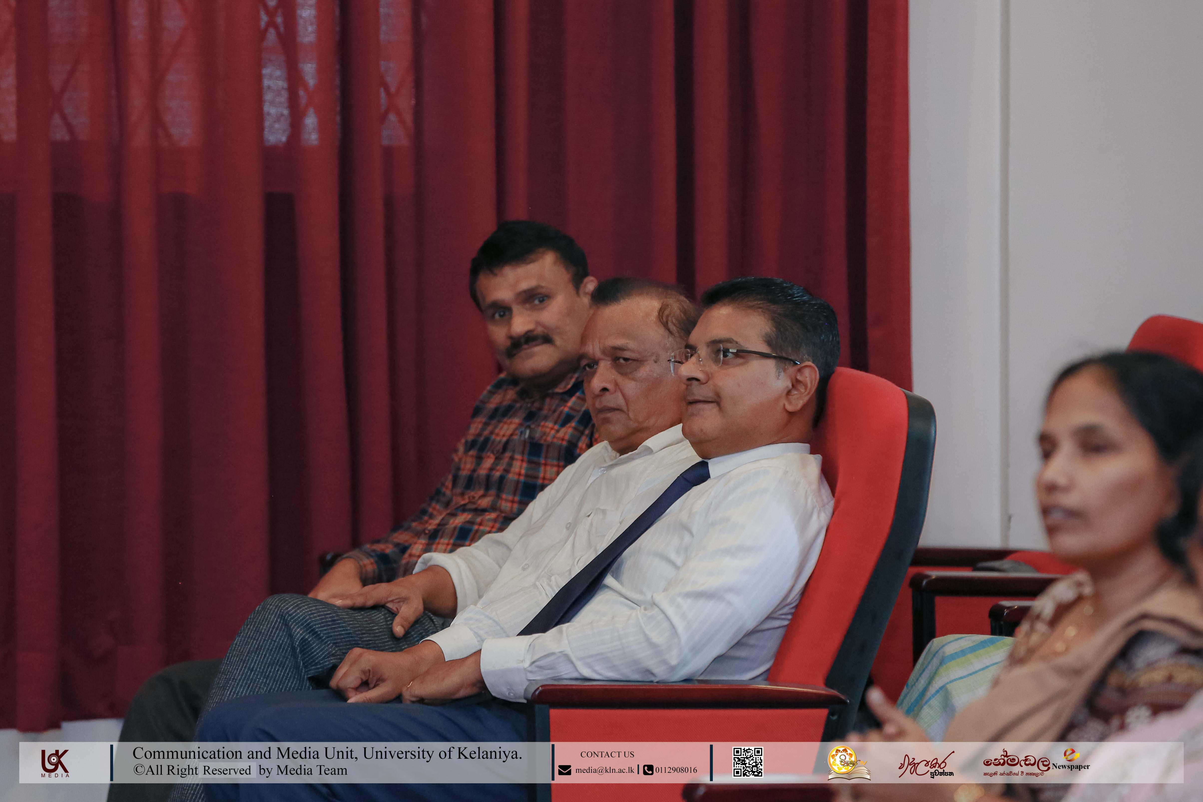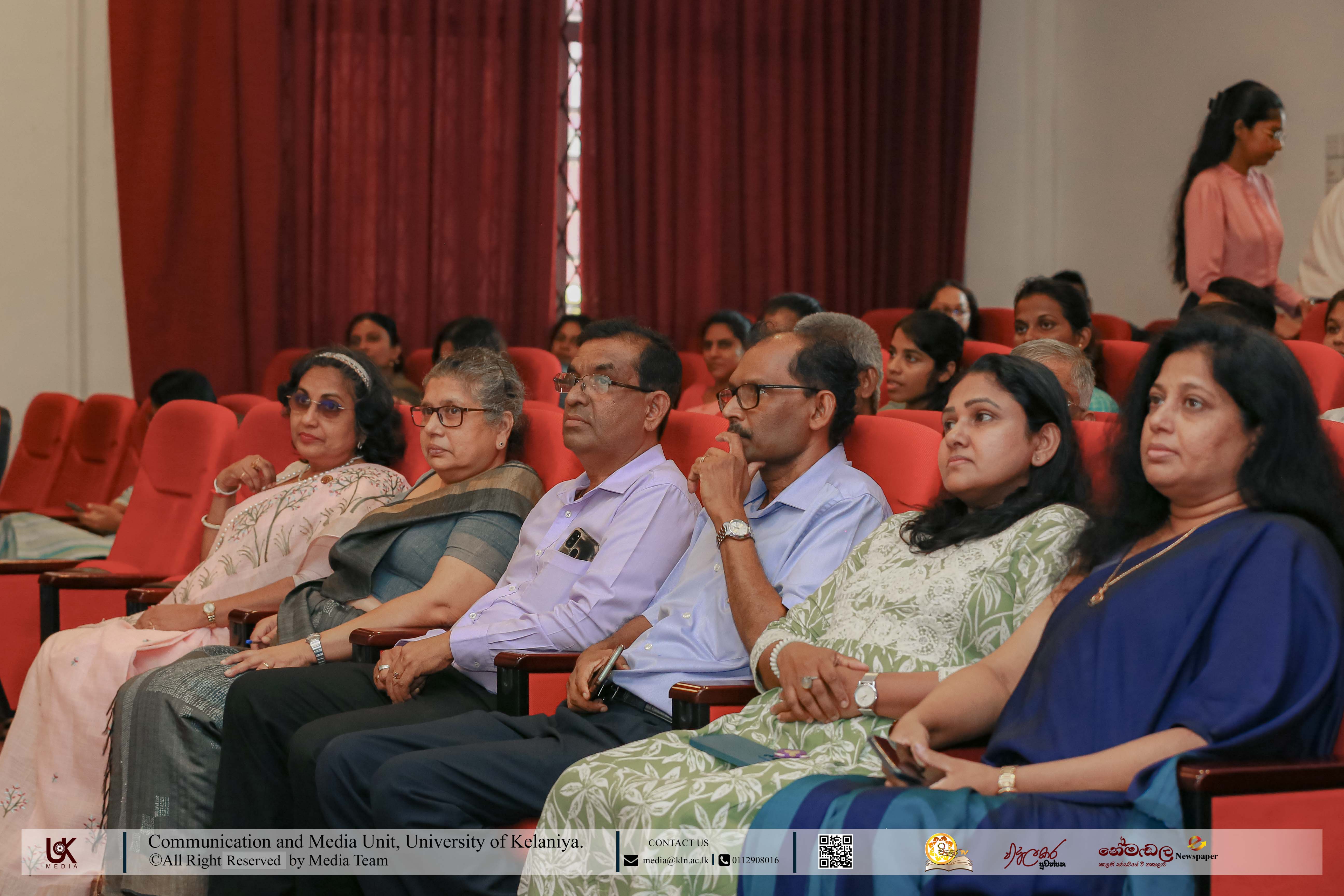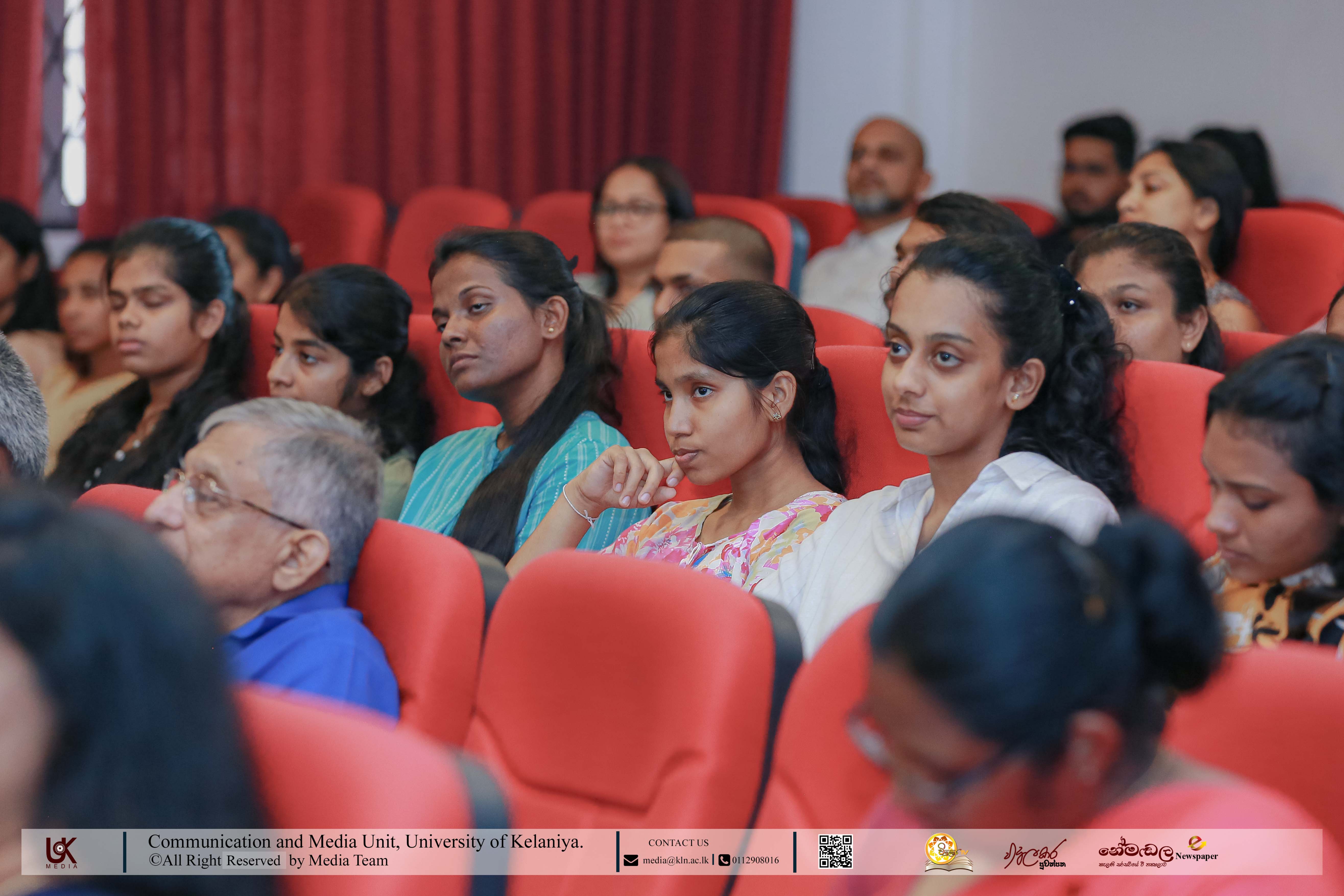 The programme was graced by Senior Professor Nilanthi de Silva, Vice-Chancellor of the University of Kelaniya, as the Chief Guest. Among the distinguished invitees present were Prof. M. M. Gunathilaka, Dean of the Faculty of Social Sciences; Dr Sudath Senarath, Dean of the Faculty of Humanities; Dr R. M. Chinthaka Sanjeewa Rathnayake, Chief Medical Officer of the University Medical Centre; Dr K. R. N. Harshani, Director of Kalana Mithuru Sewana; Dr Samanthi Jayawardena, Director of the Centre for International Affairs; and Dr Kumudu Sumedha, Director of the Centre for Social Reconciliation.