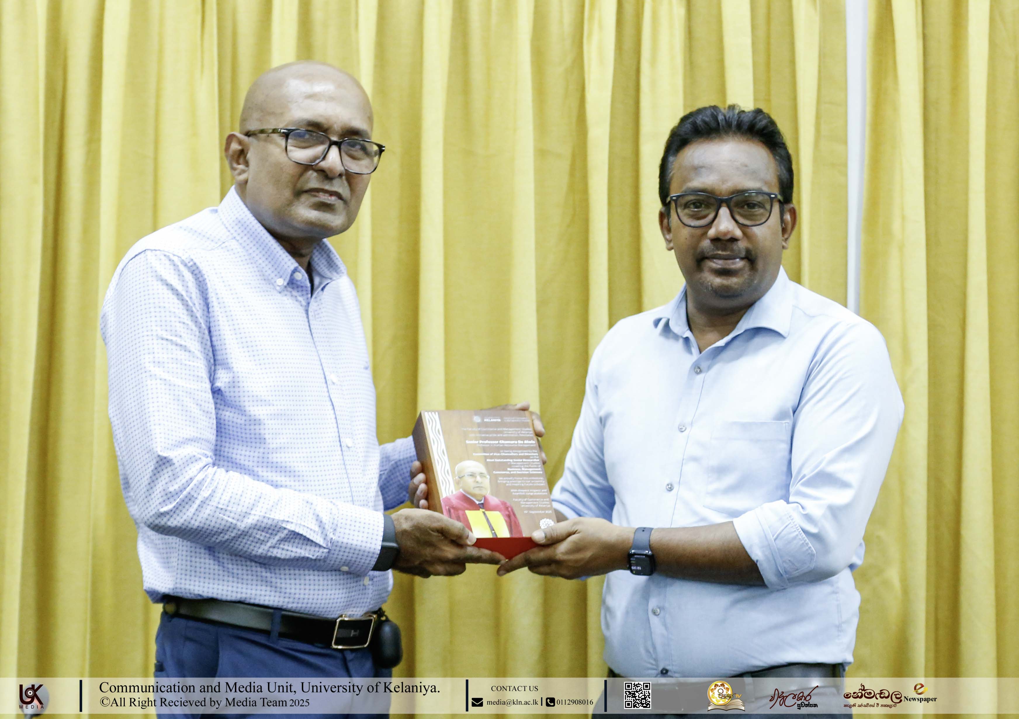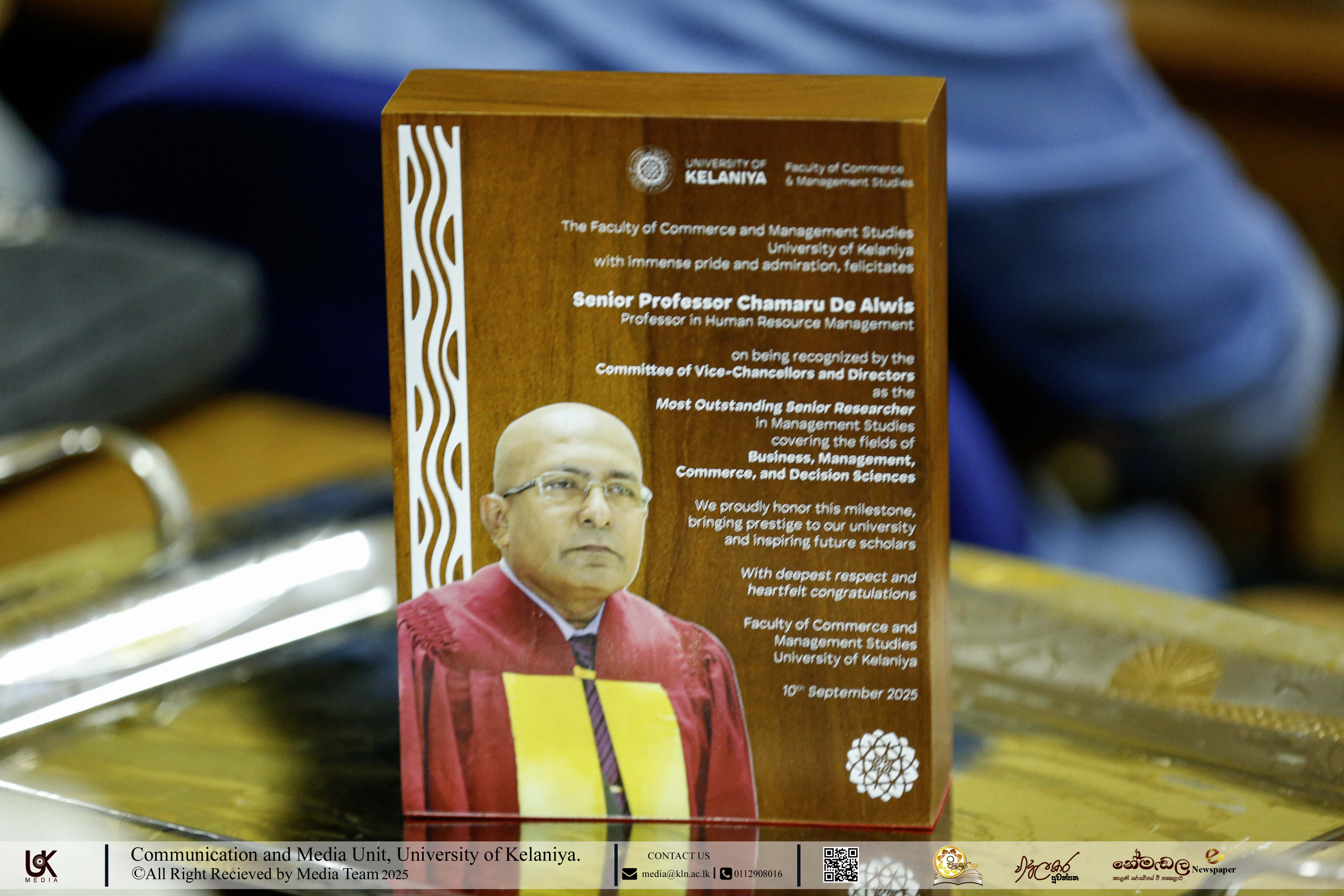 A felicitation ceremony, organized by the Faculty of Commerce and Management Studies, University of Kelaniya, was successfully held on 10th September 2025 at the Staff Development Centre to honour Senior Professor Chamaru De Alwis, Professor in Human Resource Management.