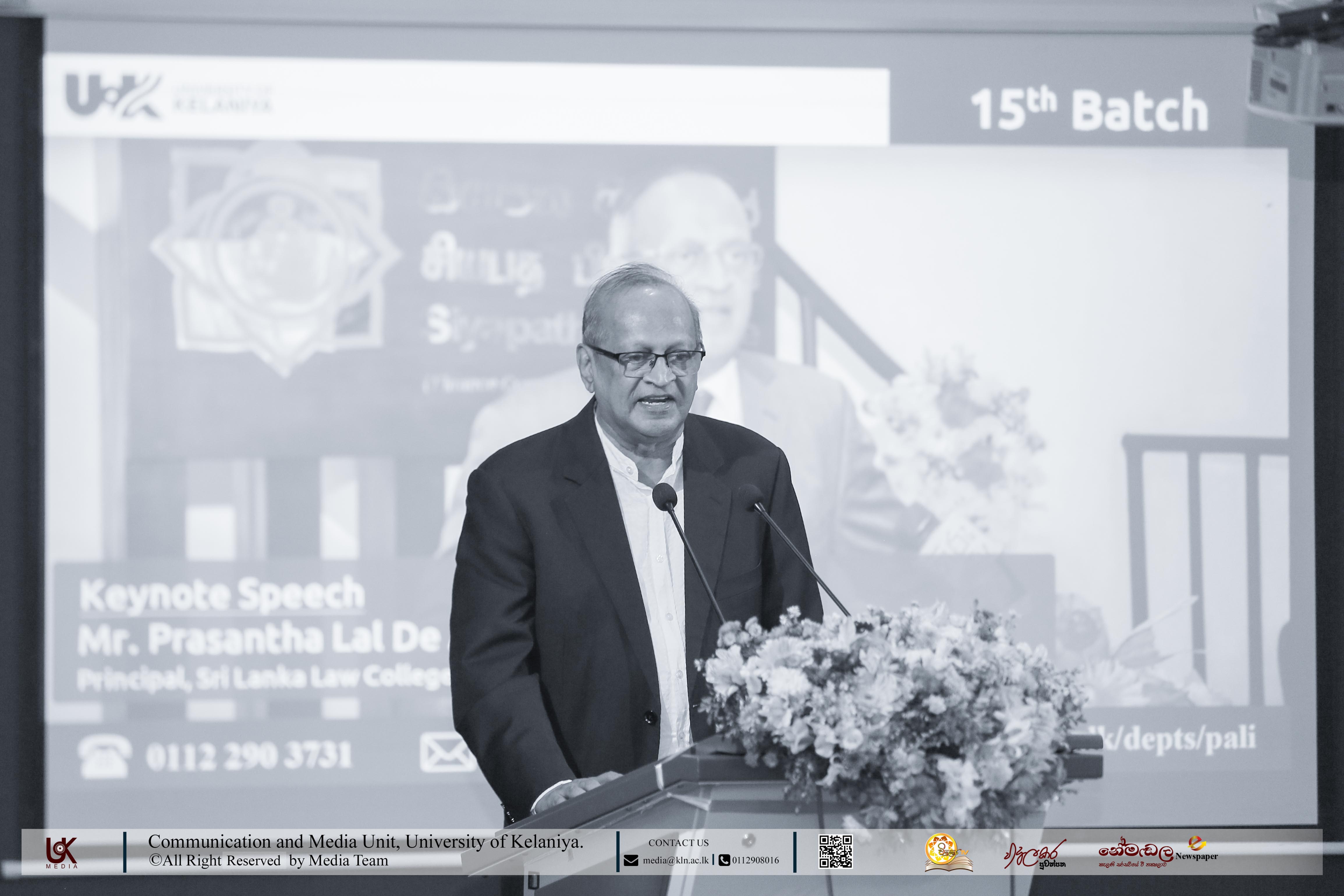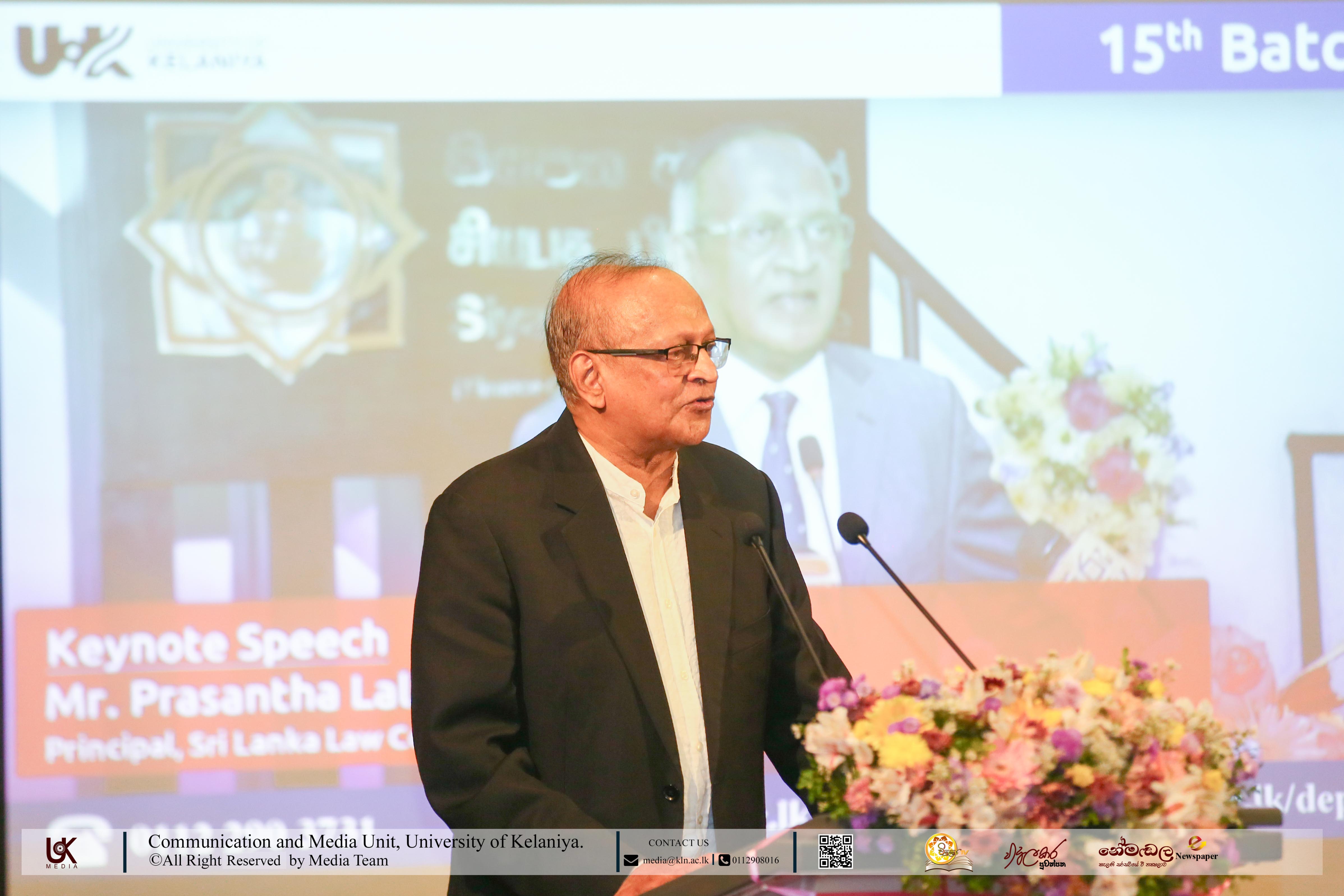The keynote address was delivered by Mr. Prashantha Lal De Alwis, President’s Counsel and Principal of the Sri Lanka Law College.