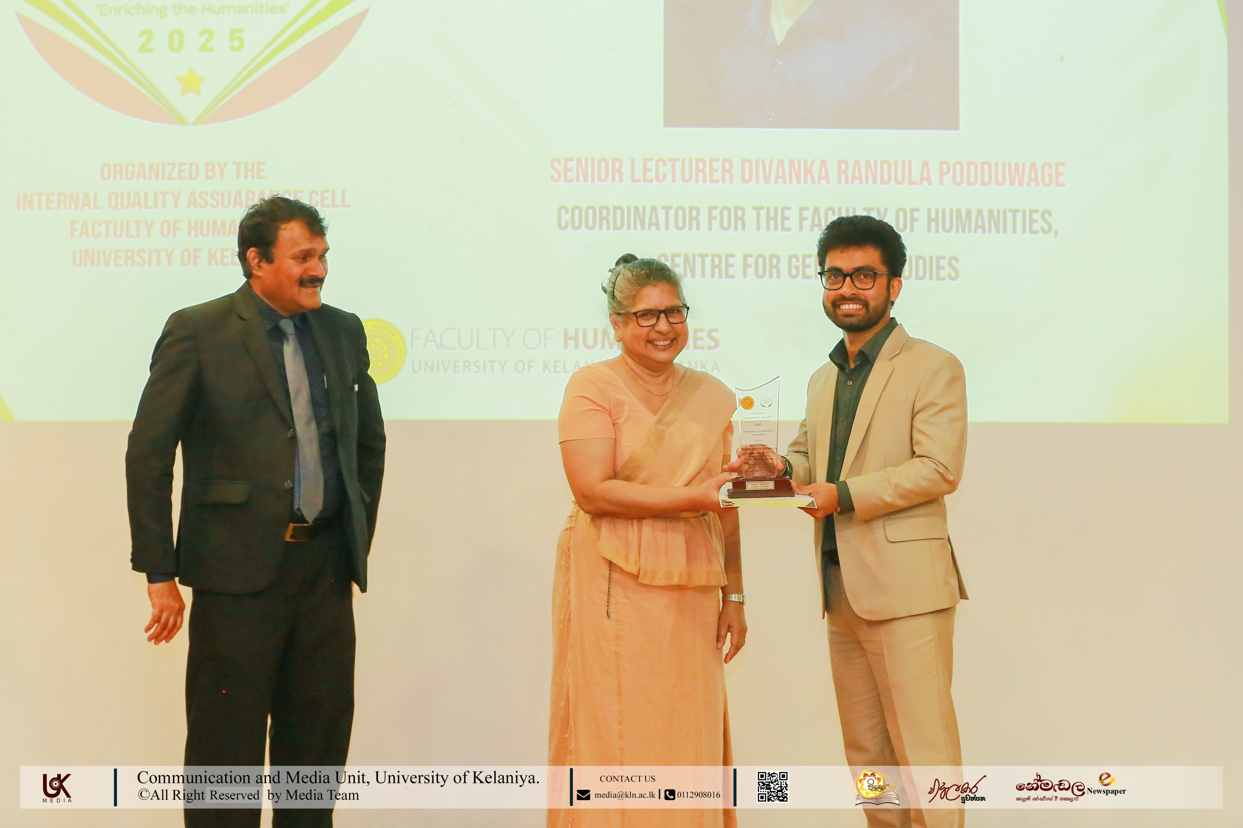 The Faculty of Humanities, University of Kelaniya proudly organised the Excellence in Humanities Awards – 2025 for the third consecutive year, reaffirming its commitment to recognising and celebrating outstanding contributions to the field of Humanities.