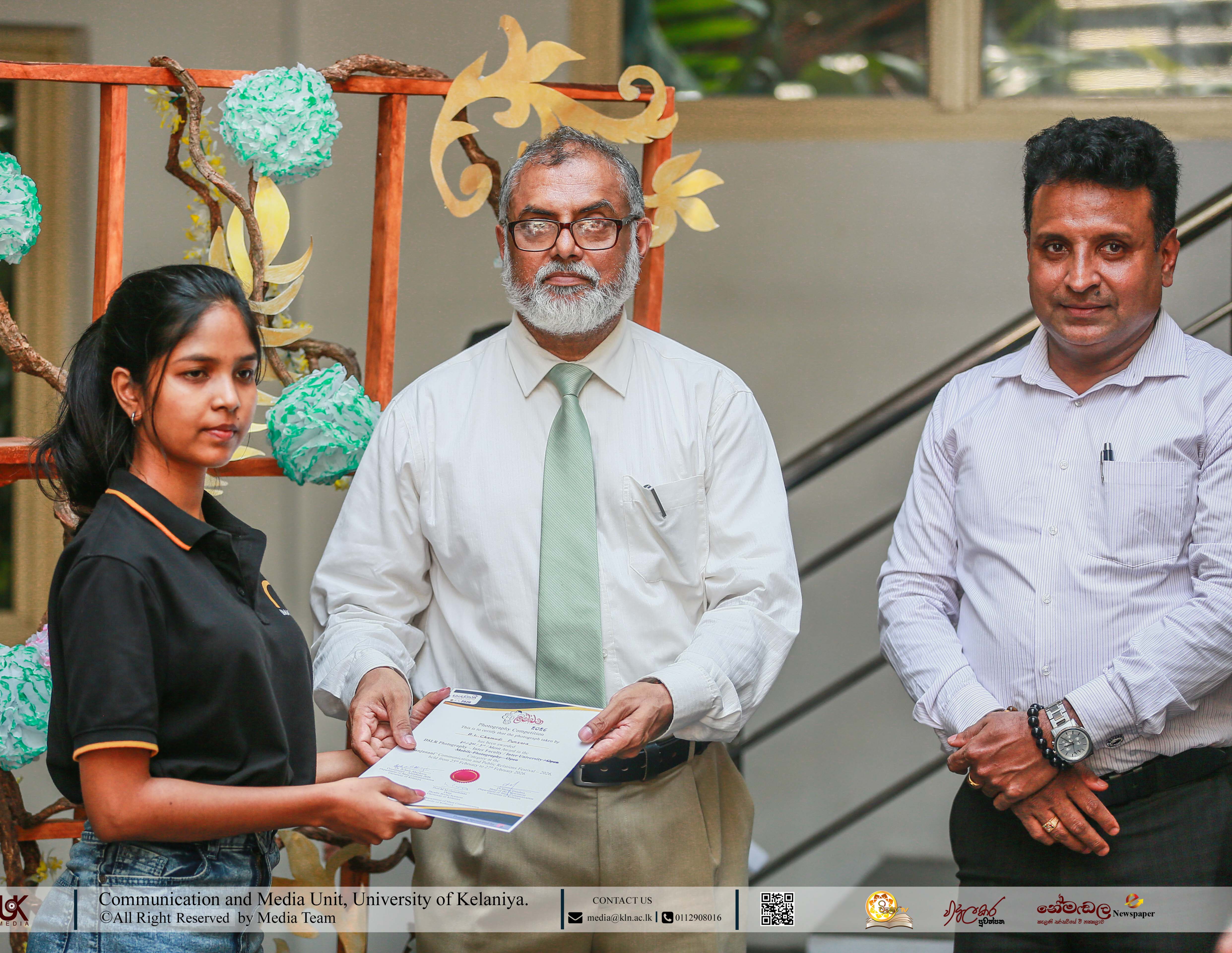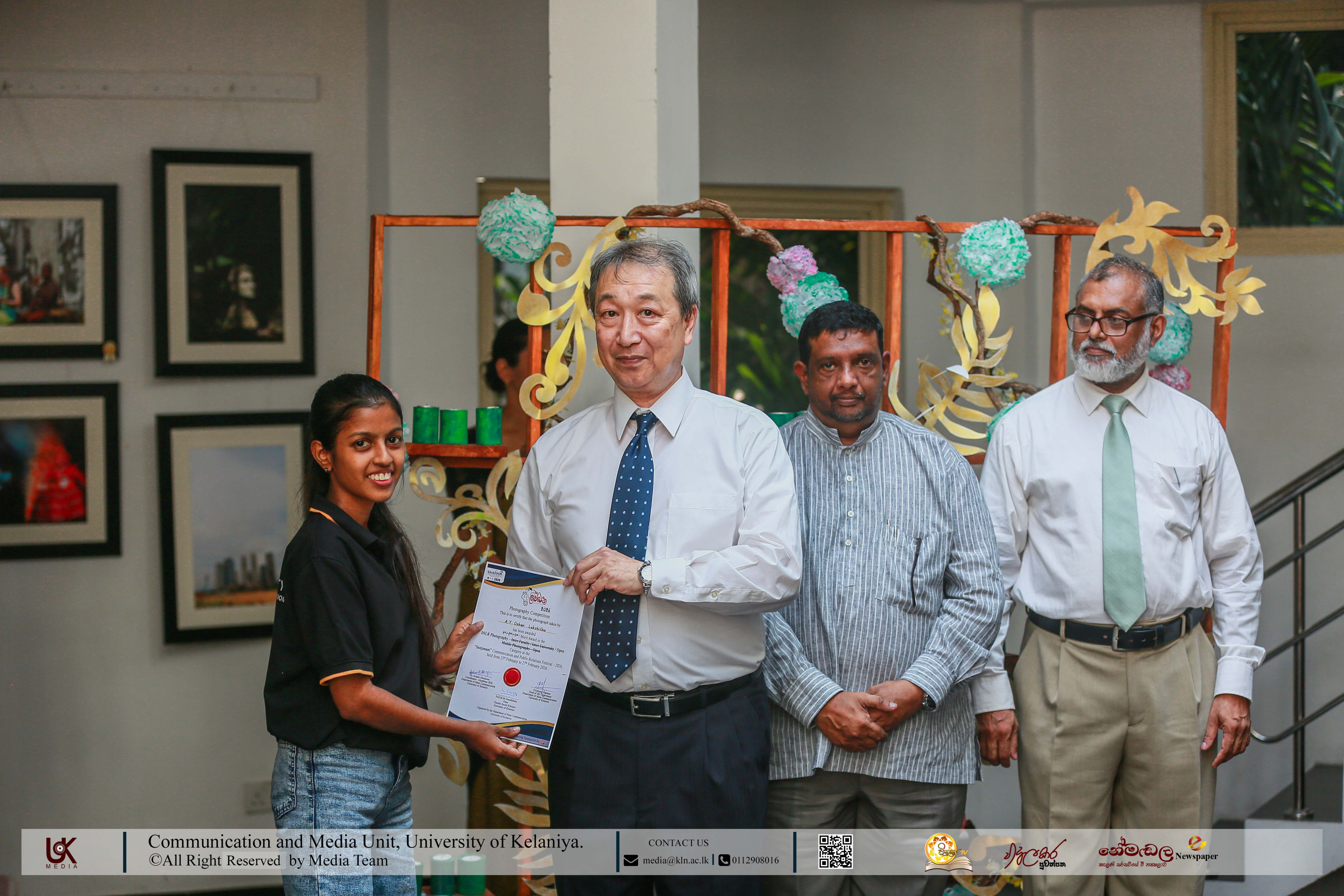 During the opening ceremony, certificates were awarded to the winners in recognition of their outstanding contributions. Additionally, a special photo collection by Mr Lokuhapuarachchi and Mr Kaluarachchi was showcased on the first floor of the Art Gallery.