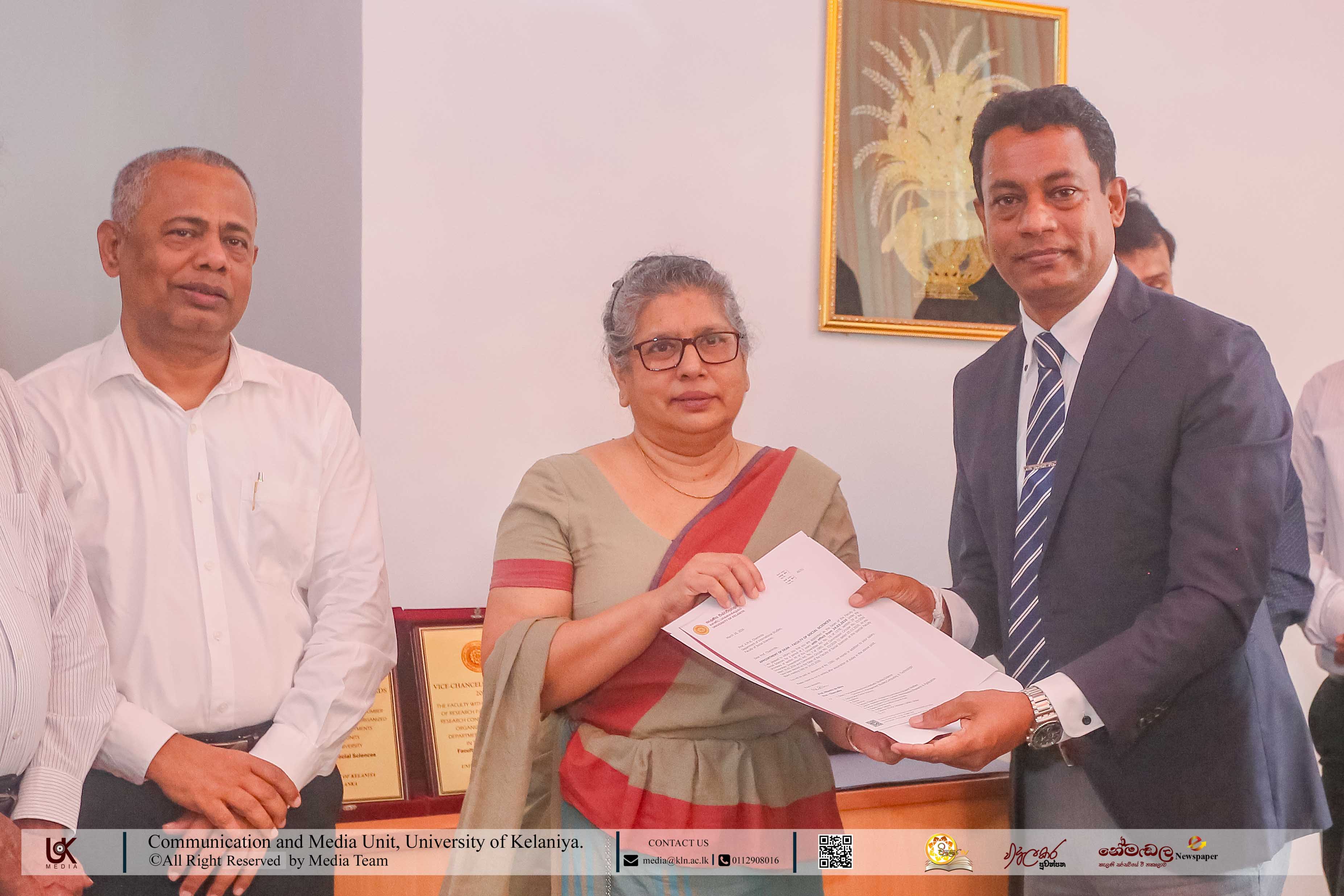 Professor Chaminda Abeysinghe assumed duties as the Dean of the Faculty of Social Sciences, University of Kelaniya, on 26th March 2026 at the Faculty Office of the Faculty of Social Sciences. The appointment letter was officially handed over to the Dean by Senior Professor Nilanthi De Silva, Vice-Chancellor of the University of Kelaniya.