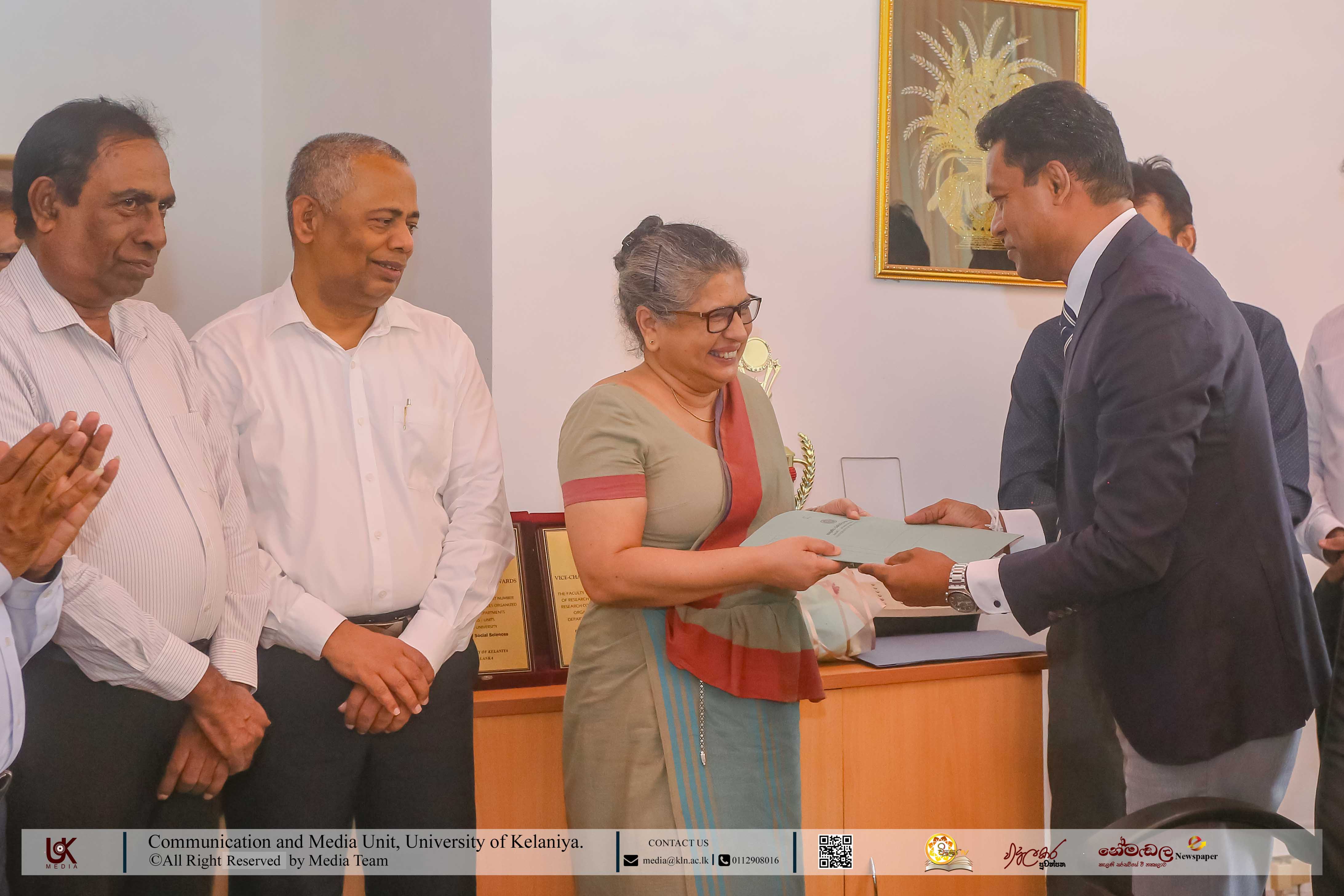 The ceremony was graced by the presence of Professor Sunanda Madduma Bandara, former Vice-Chancellor of the University of Kelaniya; Senior Professor P. A. Paranagama, Dean of the Faculty of Graduate Studies; Professor Bandara Wanninayake, Dean of Faculty of Commerce and Management Studies; Professor Dhammika Weerasinghe, Dean of the Faculty of Computing and Technology; Dr Sudath Senarath, Dean of the Faculty of Humanities; Professor Narada Fernando, Professor at the Department of Finance and Chairman of People’s Bank; Heads of the Departments; and academic and non-academic staff members of the University of Kelaniya.