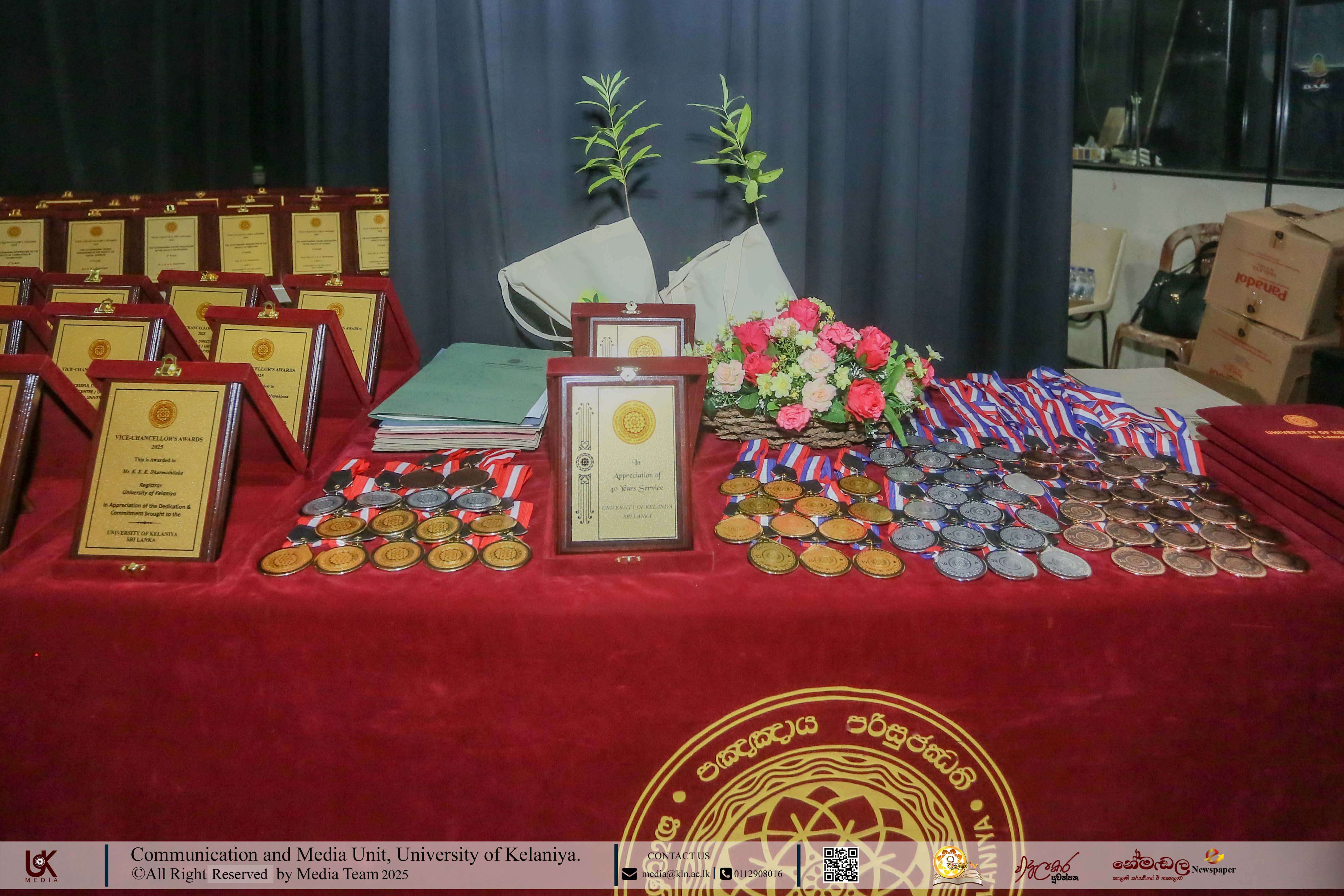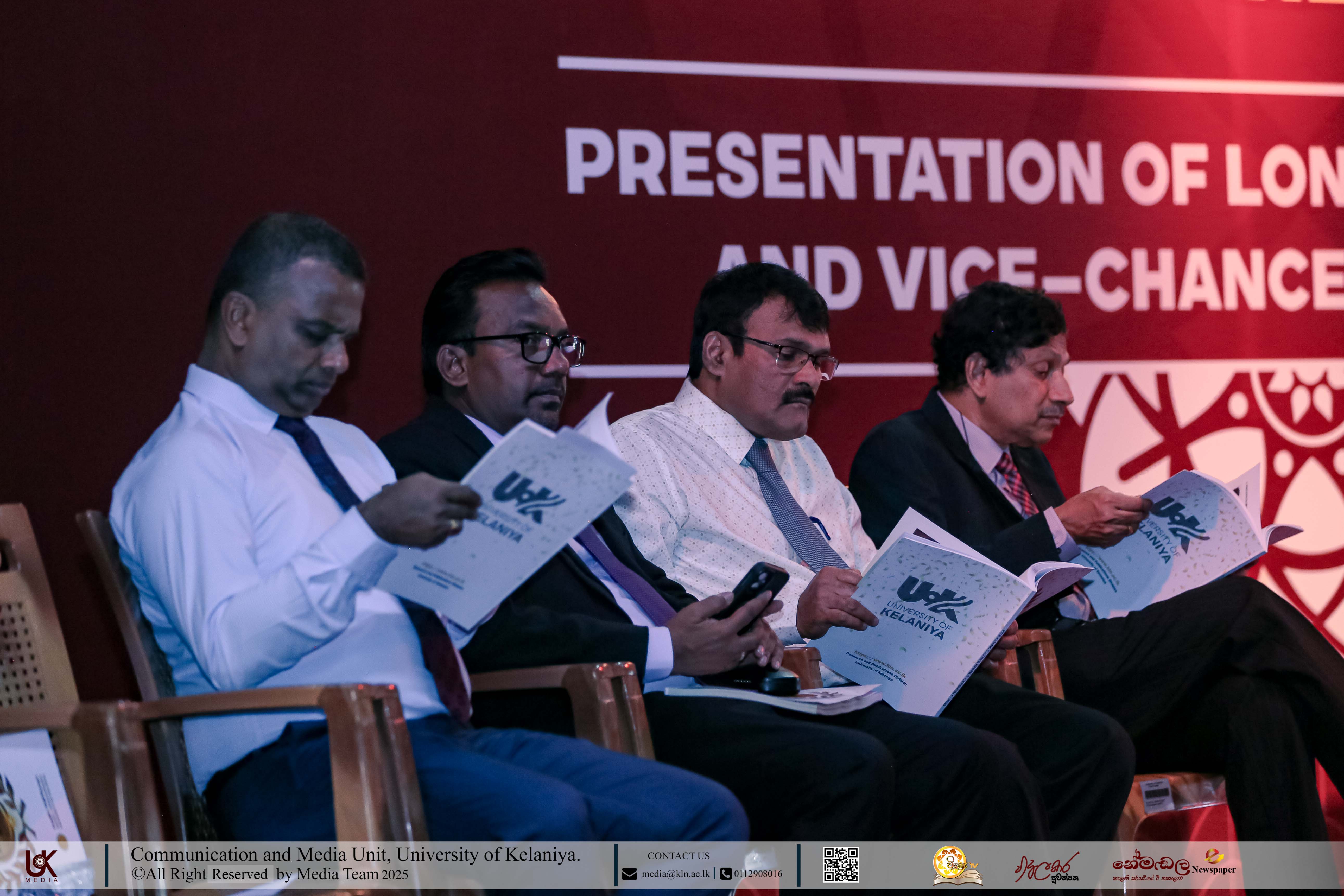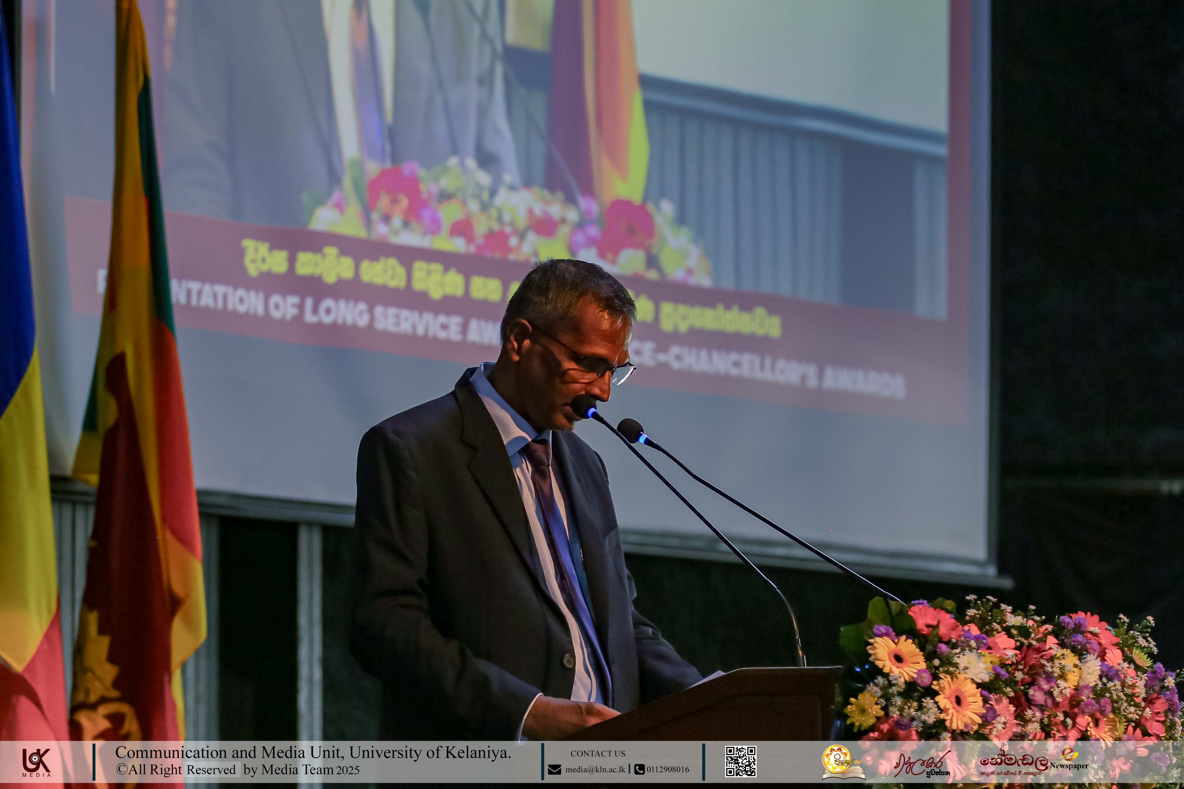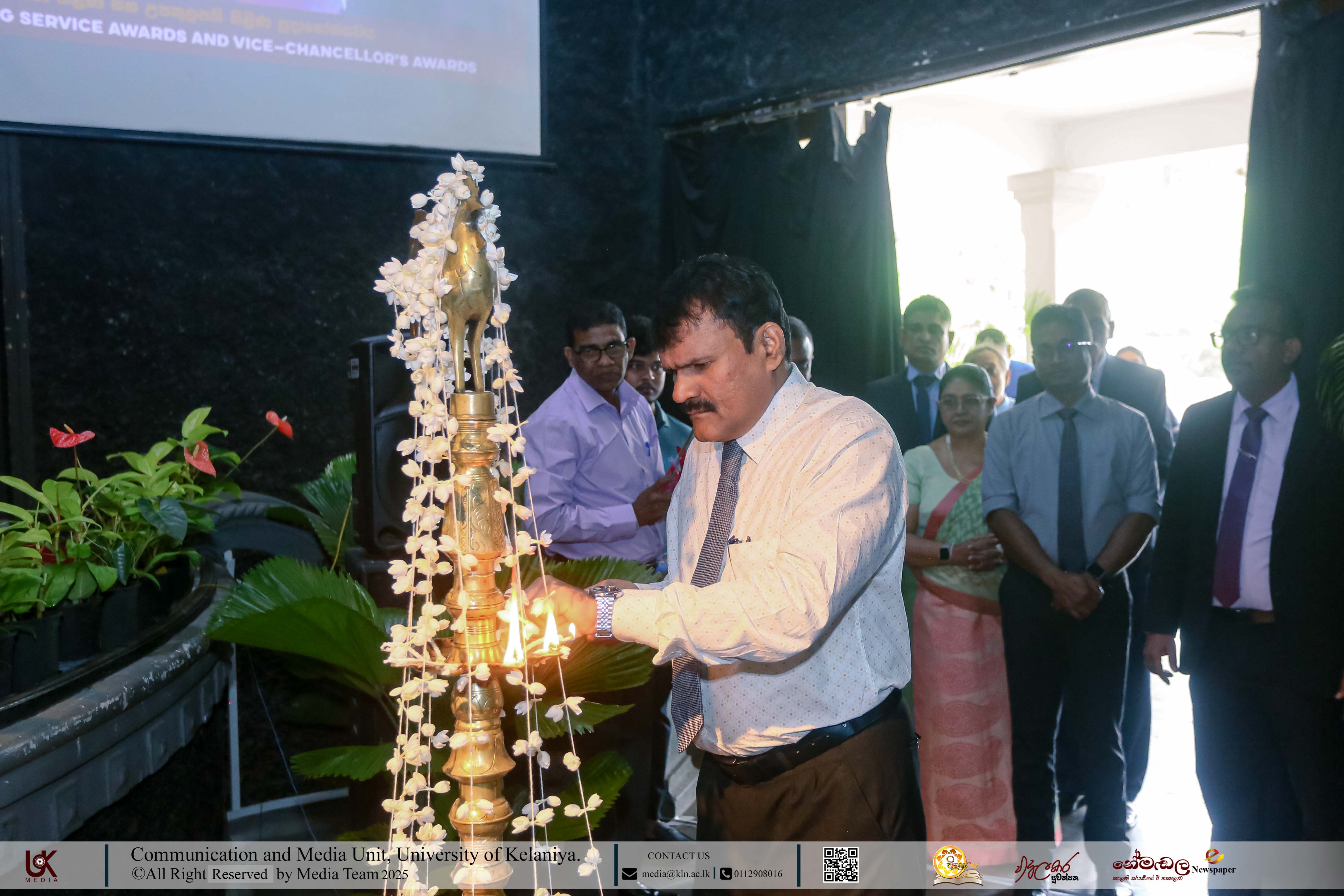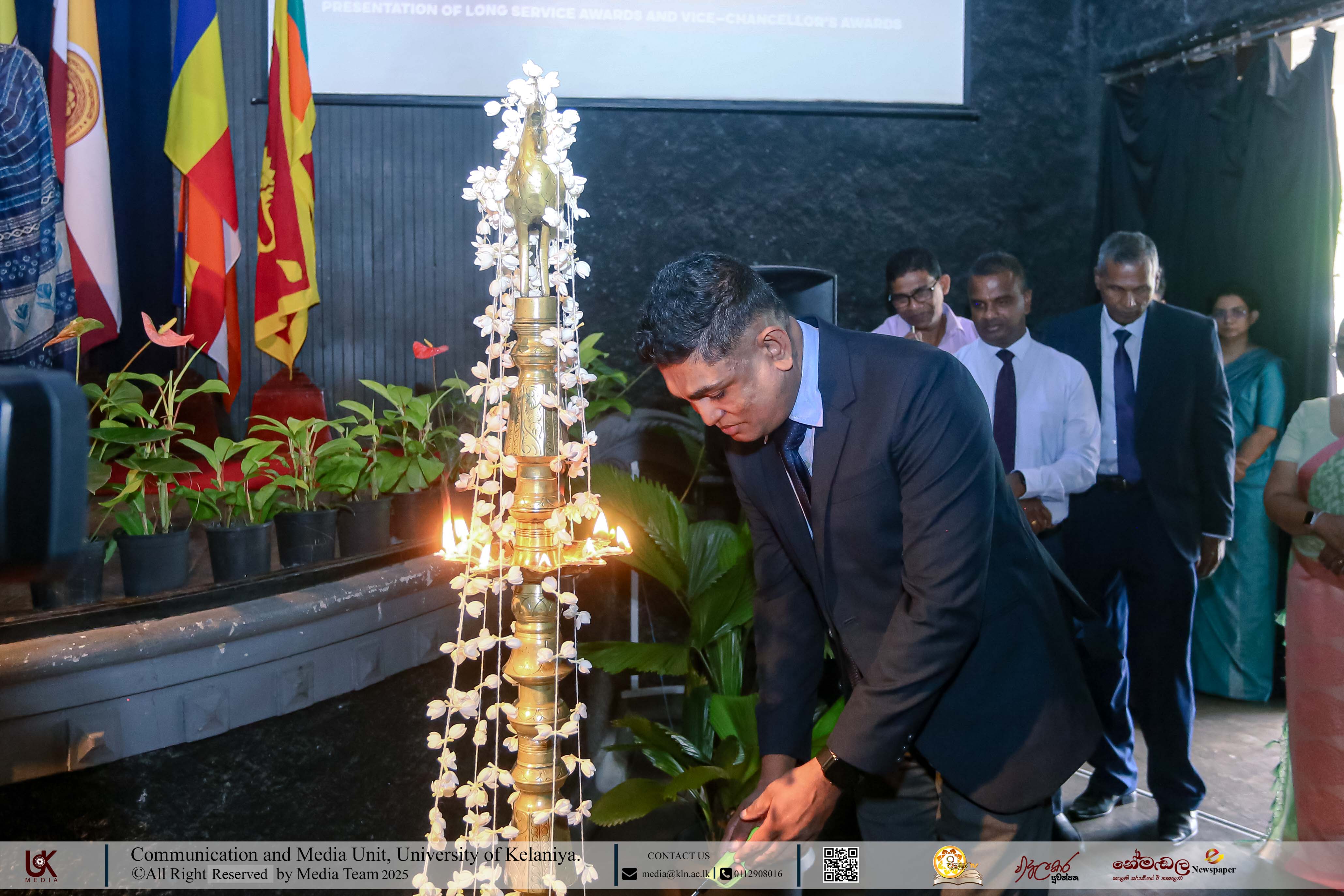 Mr D. M. N. Bandara, Chief Security Officer, University of Kelaniya; Ms D. B. W. P. Savindhi, Technical Officer (Grade I) ICT Center; Mr T. G. D. Samanthilaka, Technical Officer (Grade I), ICT Center; Mr A. T. Kannangara, Technical Officer (Grade I), Department of Chemistry, Faculty of Science; Mr S. A. A. K. Sooriyaarachchi, Technical Officer (Grade I), Department of Chemistry, Faculty of Science; Mr W. M. J. M. Welagedara, Technical Officer (ICT) (Grade III), Department of Mathematics, Faculty of Science; Ms M. B. Soolangaarachchige, Technical Officer (ICT) (Grade III), Examination Unit, Faculty of Medicine; Ms J. A. P. Madhushani, Technical Officer (ICT) (Grade III), Faculty of Medicine; and Mr H. P. N. Karunathilaka, Laboratory Attendant (Grade II), ICT Center received Gold Medals and certificates under the category, Vice-chancellor’s Awards for Executive Officers, Academic Support Staff and Non-academic Staff in 2025.