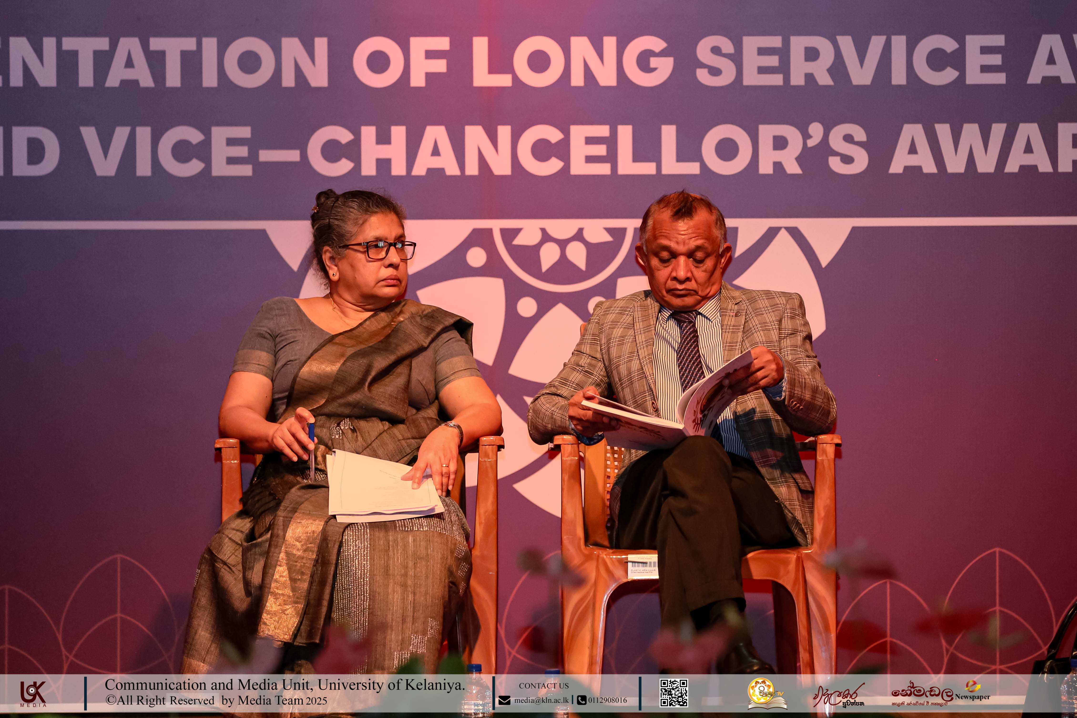 Ms M. M. N. T. K. Yalagama, Deputy Registrar, Academic Establishment Division; Mr A. H. Dileep, Programmer Cum System Analyst, Faculty of Science; Mr D. I. K. Solangarachchi, System Engineer, Faculty of Medicine; Ms E. M. N. D. Ekanayaka, Assistant Student Counsellor, Faculty of Medicine; Ms R. M. P. S. M. Rathnayaka, Assistant Student Counselor, Faculty of Science; Mr I. R. P. Wijewardhana, Sub Warden (Special Grade), Student Welfare Division; Ms R. S. Hettiarachchi, Sub Warden (Special Grade), Student Welfare Division; Ms S. D. K. M. Kumari, Sub Warden (Special Grade), Student Welfare Division; Mr L. G. C. S. Ranasinghe, Sub Warden (Grade I), Student Welfare Division; Mr A. M. C. Kumara, Sub Warden (Grade I) Student Welfare Division; Ms H. M. S. K. Herath, Sub Warden (Grade I), Student Welfare Division; Ms A. K. R. Madhumali, Sub Warden (Grade II), Student Welfare Division; Ms W. A. S. L. Wijesekara, Management Assistant (Grade I), General Administration; Ms Ama Abayawardana, Management Assistant (Grade III) Accounts Branch; Mr E. G. R. Chaminda, Driver (Special Grade), Transport Division; Mr J. L. S. N. K. Liyanage, Driver (Grade I), Transport Division; Mr G. C. P. Gunasekara, Driver (Grade I), Transport Division; Mr R. M. C. B. Rathnayaka, Driver (Grade II), Transport Division; Mr H. M. R. B. Herath, Driver (Grade II), Transport Division; and Mr Y. R. I. G. N. Rajarathna, Works Aide (Grade II), General Administration received certificates under the category, Vice-chancellor’s Awards for Executive Officers, Academic Support Staff and Non-academic Staff in 2025.