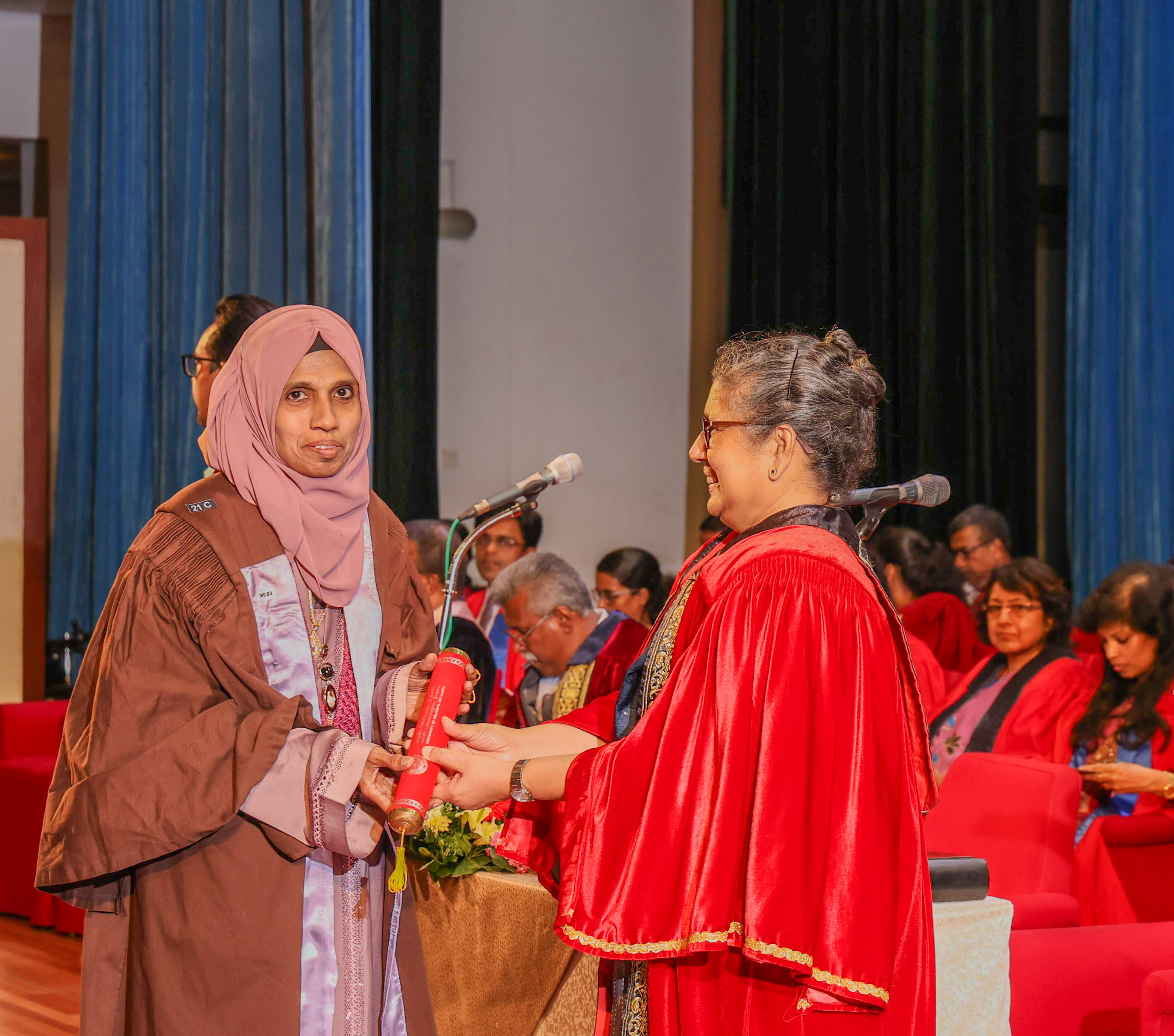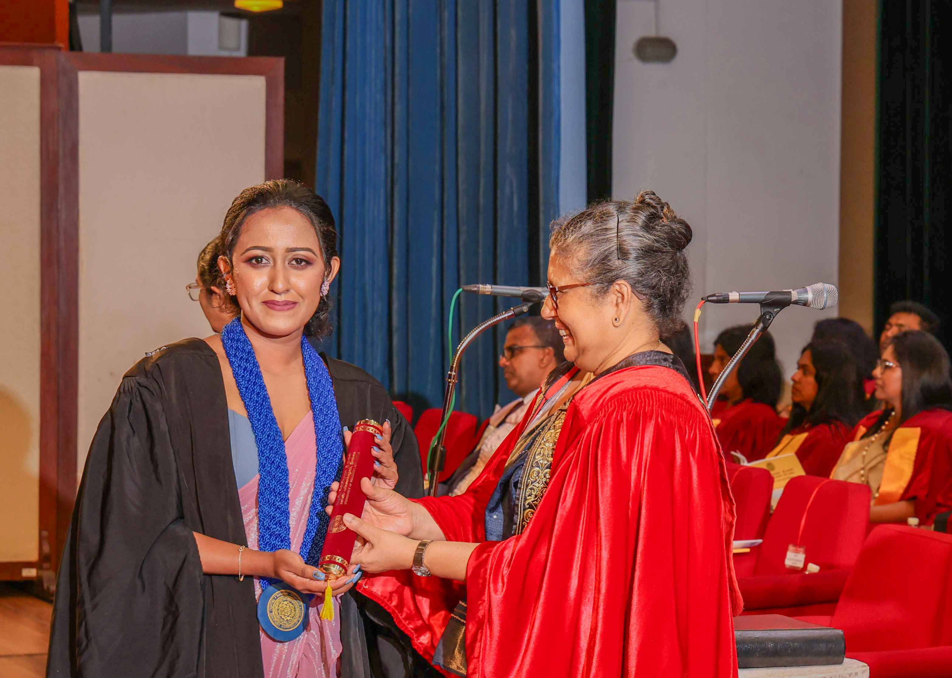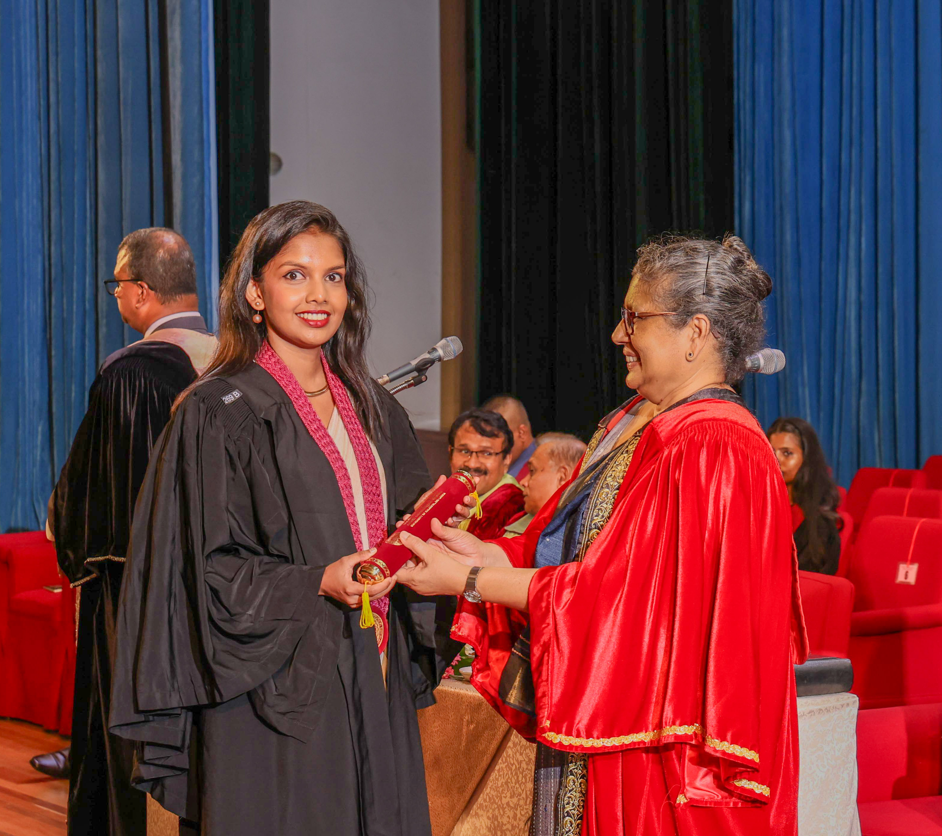 Senior Professor Nilanthi de Silva, the Vice-Chancellor of the University of Kelaniya; Deans of the Faculties; Heads of the Departments; the Registrar; the Librarian; Directors and Chairpersons of the Units and Centers; Academic and Non-Academic Staff; graduands; and their families graced the event.