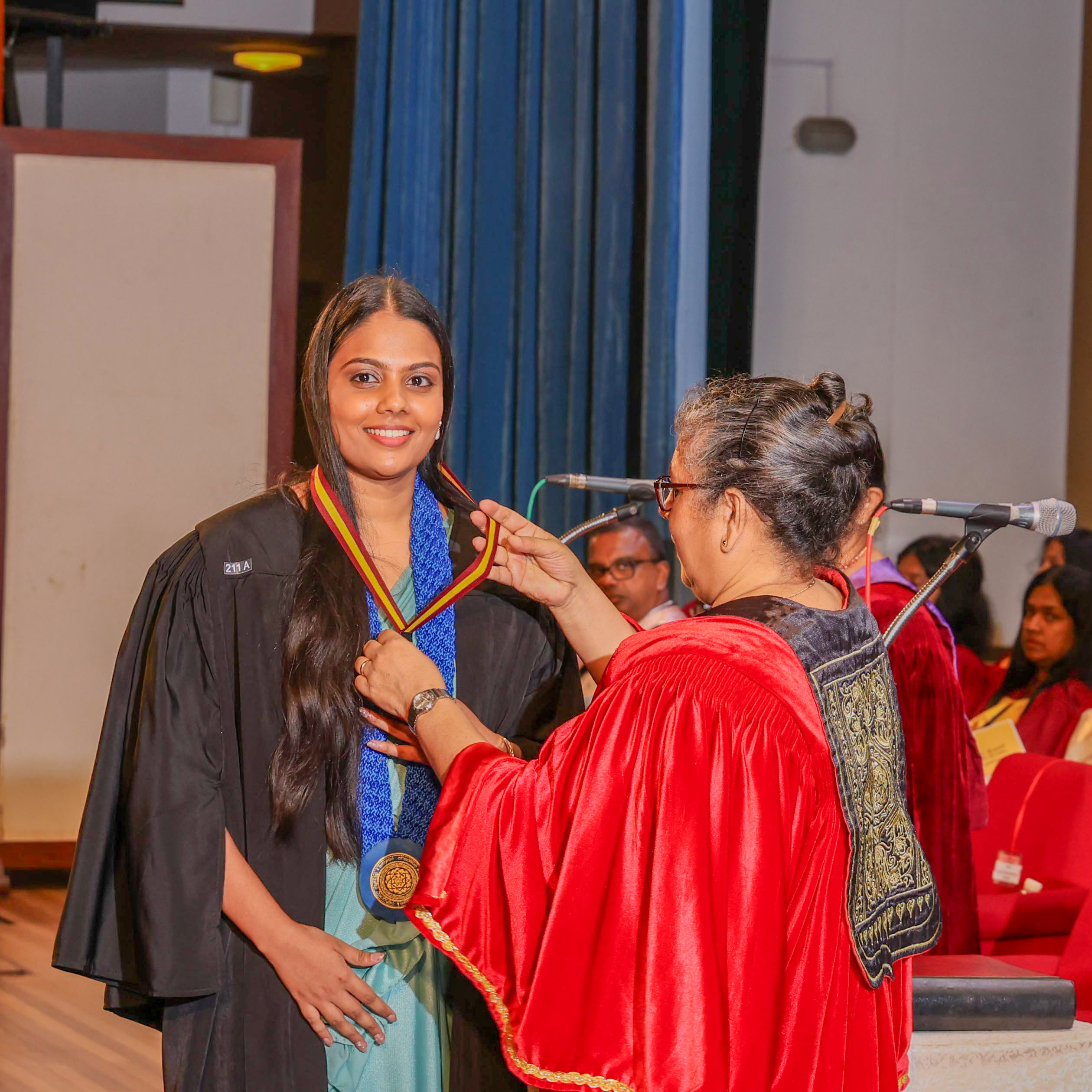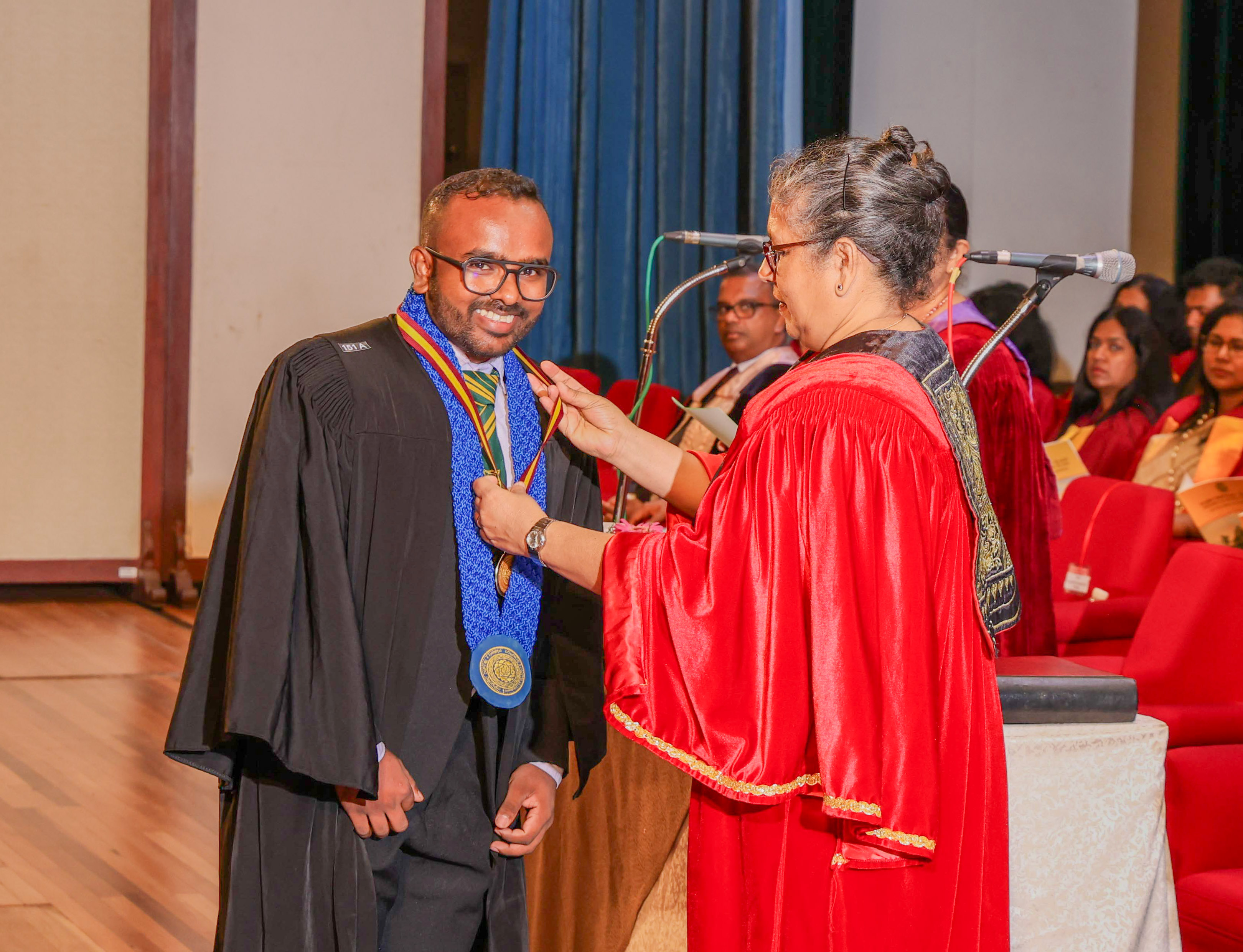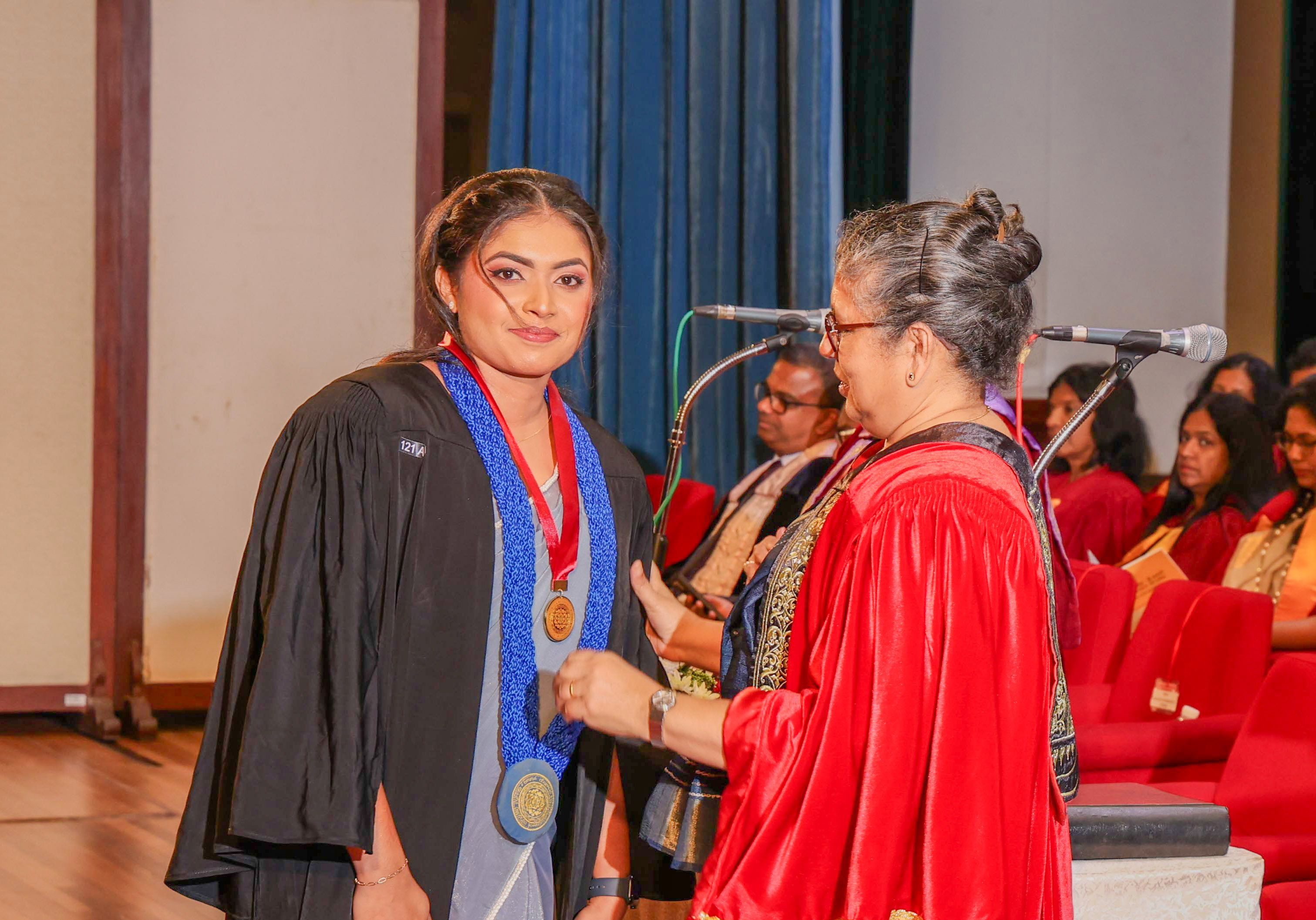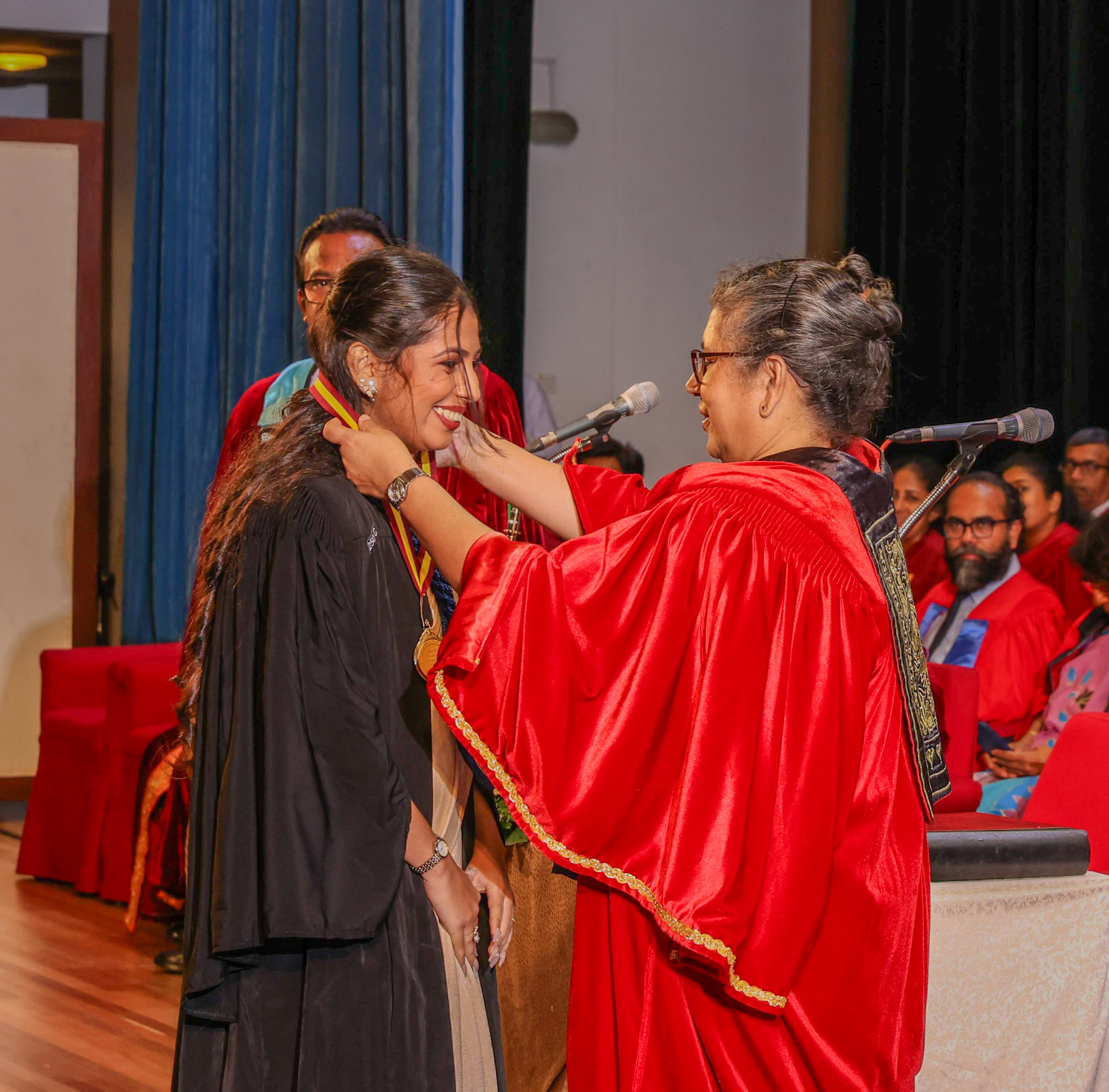 At this session, Ms Helani Udara Seekkubadu was awarded the Venerable Ratmalane Sri Dharmarama Thero Memorial Gold Medal, offered by the Alumni Association of the University of Kelaniya, for obtaining the highest marks for the B.A. Honours degree examinations of the Faculty of Science, and the Gold medal awarded by the Alumni Association of the Faculty of Science, for obtaining the highest GPA in Bachelor of Science Honours in Software Engineering. Ms Jayasundara Pathirannehelage Harini Githma Jayasundara was awarded the Mastercard Digital Excellence Gold Medal, offered by the Mastercard Singapore Holding Pte. Ltd. for showing excellence in the Digital Innovation Research Project under the Bachelor of Science Honours Degree in Management and Information Technology. Ms Jeevaraj Sapthiha Priyatharshini was awarded the Gold Medal for Academic Excellence, offered by the academic staff members of the Department of Industrial Management for showing excellence in Business Systems Engineering under the Bachelor of Science Honours Degree in Management and Information Technology. Ms Sachintha Abhayagunawardhana Weerasinghe was awarded the Gold medal awarded by the Alumni Association of the Faculty of Science, for obtaining the highest GPA in Bachelor of Science Honours in Computer Science. Ms Imbulana Badalge Amaya Chamini Imbulana was awarded the Gold medal awarded by the Alumni Association of the Faculty of Science, for obtaining the highest GPA in Bachelor of Science Honours Degree in Environmental Conservation & Management. Ms Ragavee Mekala Saras Chandran was awarded the Gold medal awarded by the Alumni Association of the Faculty of Science, for obtaining the highest GPA in Bachelor of Science Honours in Mathematical Physics. Ms Dona Aravindya Diyathini Weththasinghe was awarded the Gold medal awarded by the Alumni Association of the Faculty of Science, for obtaining the highest GPA in Bachelor of Science Honours in Molecular Biology & Plant Biotechnology. Ms Amal Cader Mohideen Mohideen was awarded the Gold medal awarded by the Alumni Association of the Faculty of Science, for obtaining the highest GPA in Bachelor of Science Honours in Zoology. Ms Rajaguru Mudiyanselage Bimba Madhubhashini Sathsarani Rajaguru was awarded the Professor C. Dahanayake Memorial Gold Medal, offered by the Department of Physics and Electronics, for showing excellence in Physics, and the Gold medal awarded by the Alumni Association of the Faculty of Science, for obtaining the highest GPA in Bachelor of Science Honours in Physics. Mr Buddhima Priya Abeyweera Gunawardena was awarded the Professor H. H. Costa Memorial Gold Medal, offered by the Department of Zoology and Environmental Management, for obtaining the highest GPA in the Bachelor of Science Honours in Zoology Degree Programme. Ms Biyagama Thenannahalage Vishmi Gunatilaka was awarded the Gold Medal offered by the Sarojini Jayawardane Memorial Gold Medal for obtaining the highest marks in Bachelor of Science Honours in Microbiology, and the Gold medal awarded by the Alumni Association of the Faculty of Science, for obtaining the highest GPA in Bachelor of Science Honours in Microbiology. Mr Meegasmullage Tharuka Sandaruwan was awarded the Gold Medal for the Most Outstanding Student, offered by the academic staff members of the Department of Industrial Management, showing excellence in both academic and extra-curricular activities in the Bachelor of Science Honours in Information Technology. Mr Hitihamillage Nihim Nusith Abhayarathne was awarded the Gold Medal for the Most Outstanding Student, offered by the academic staff members of the Department of Industrial Management, showing excellence in both academic and extra-curricular activities in the Bachelor of Science Honours in Management and Information Technology. Mr Wedikkara Arachchige Savindu Harith was awarded the Gold Medal for Academic Excellence, offered by the academic staff members of the Department of Industrial Management, for showing excellence in Information Technology course modules in the Bachelor of Science Honours in Information Technology. Ms Selvakumar Thakshanah was awarded the Gold Medal for Academic Excellence, offered by the academic staff members of the Department of Industrial Management, for showing excellence in Management and Technology course modules in the Bachelor of Science Honours in Information Technology. Ms Ranaraja Pathirana Basnayakalage Nethmi Amaya Senarathne was awarded the Gold Medal for Academic Excellence, offered by the academic staff members of the Department of Industrial Management, for showing excellence in Business Systems course modules in the Bachelor of Science Honours in Management and Information Technology, and the Gold medal awarded by the Alumni Association of the Faculty of Science, for obtaining the highest GPA in Bachelor of Science Honours in Management and Information Technology. Ms Pihilikumbure Gedara Sajani Jeewanthi Pihilikumbura was awarded the Gold medal awarded by the Alumni Association of the Faculty of Science, for obtaining the highest GPA in Bachelor of Science Honours in Biochemistry. Ms Warnakulasuriya Weerakonda Arachchige Dinuki Rangika Fernando was awarded the Gold medal awarded by the Alumni Association of the Faculty of Science, for obtaining the highest GPA in Bachelor of Science Honours in Information Technology. Ms Waduge Ann Hiruni Shashikala Livera was awarded the Gold medal awarded by the Alumni Association of the Faculty of Science, for obtaining the highest GPA in Bachelor of Science Honours in Chemistry. Ms Samarakoon Mudiyanselage Dulanji Madushika Kumari Samarakoon was awarded the Gold medal awarded by the Alumni Association of the Faculty of Science, for obtaining the highest GPA in Bachelor of Science Honours in Statistics. Ms Wallahagolle Gedara Mahesha Pavithrani Dissanayake was awarded the Gold medal awarded by the Alumni Association of the Faculty of Science, for obtaining the highest GPA in Bachelor of Science 
