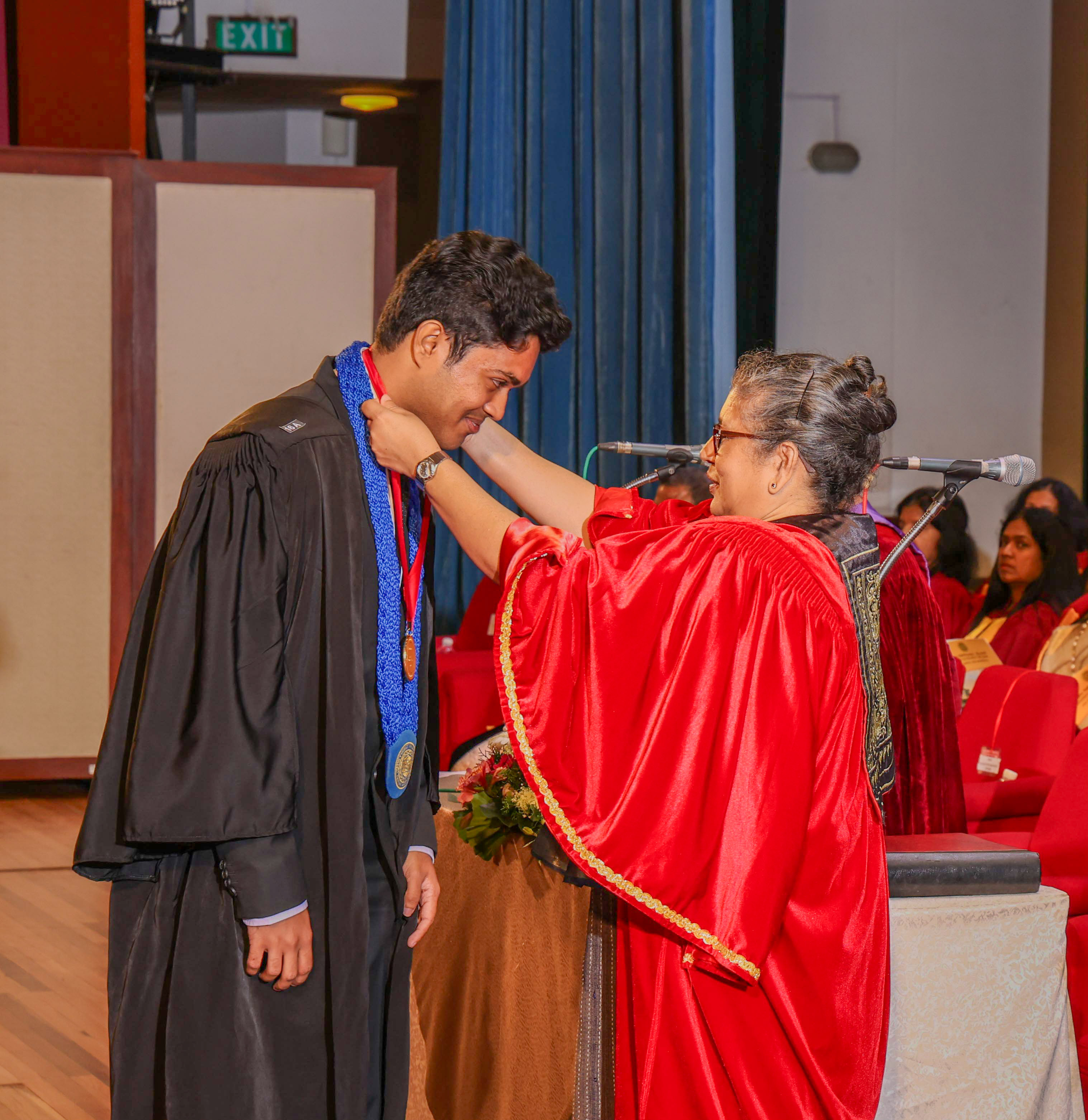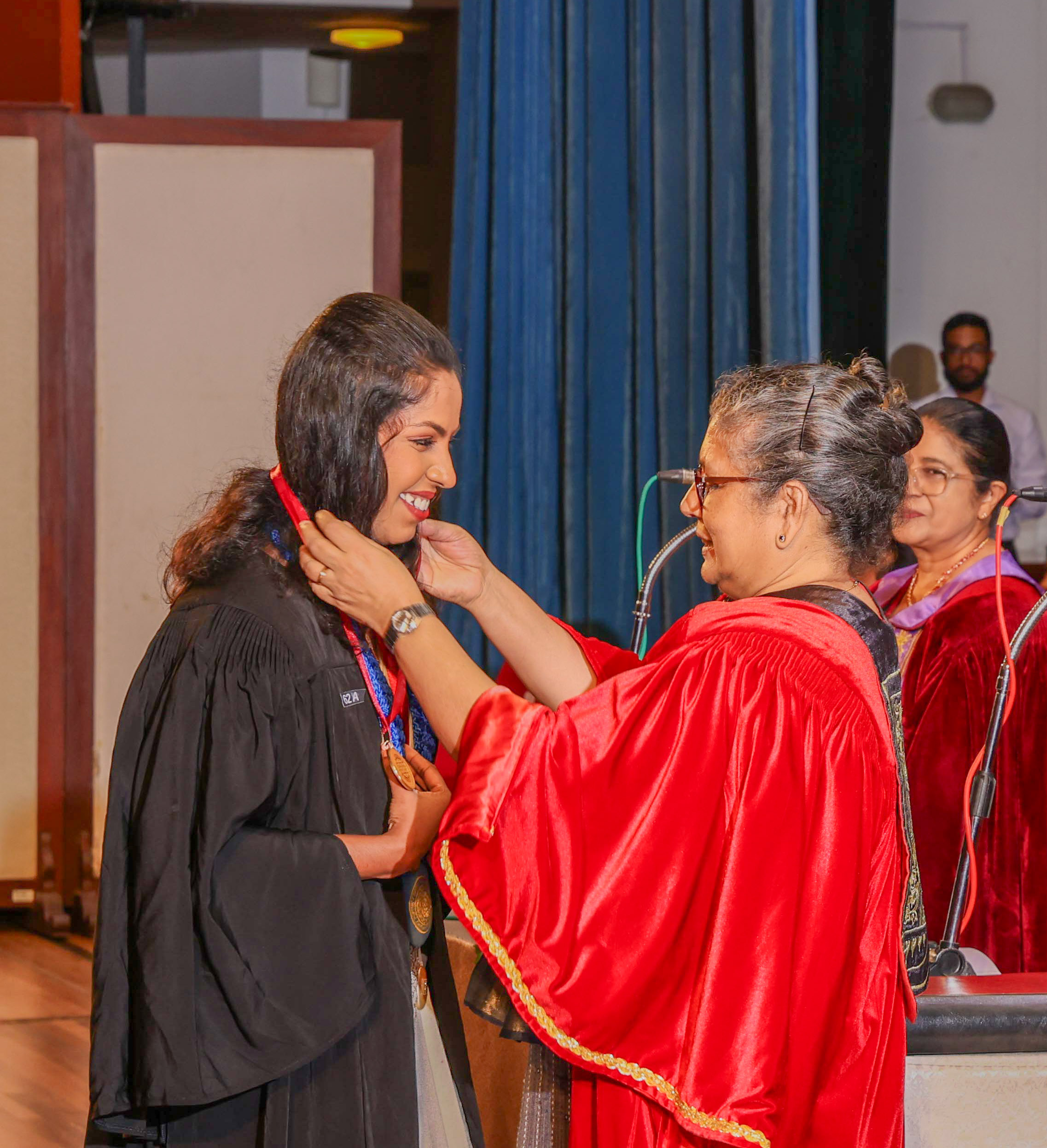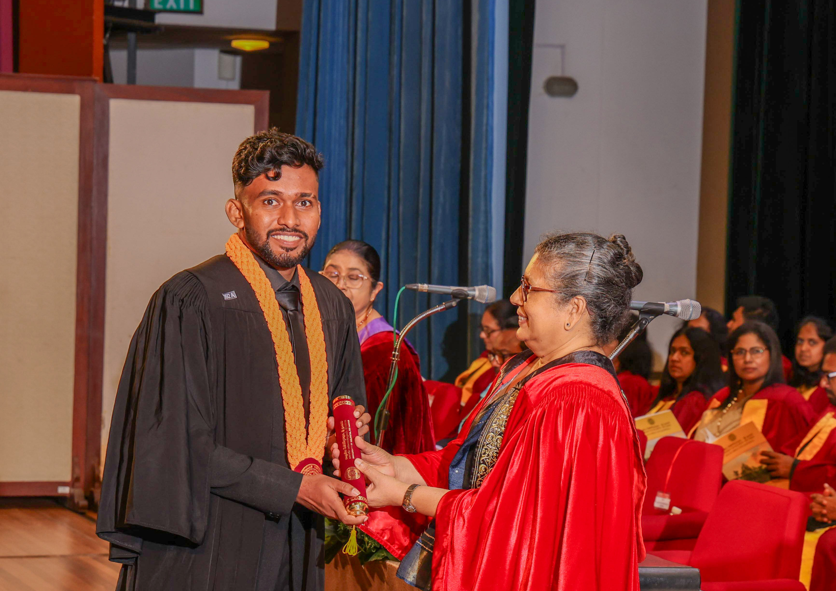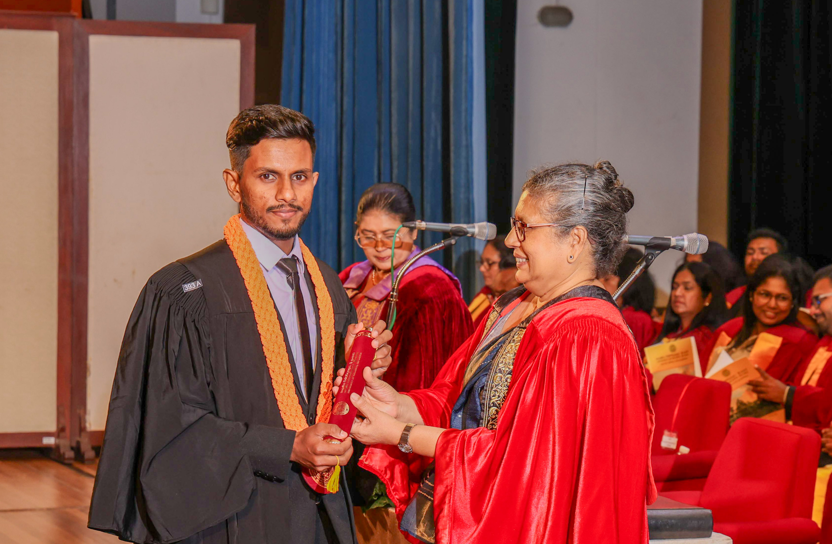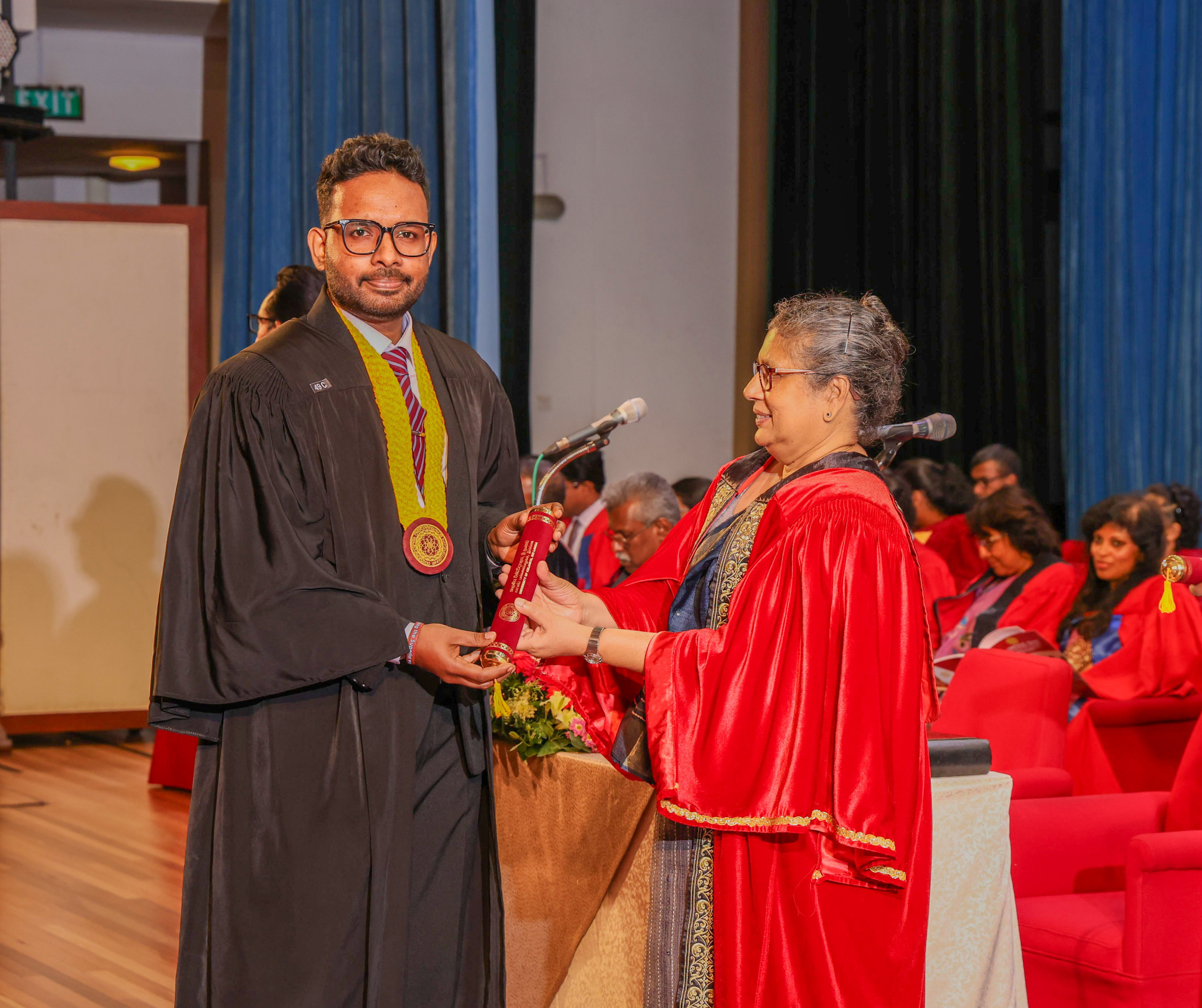 At this session, Ms Helani Udara Seekkubadu was awarded the Venerable Ratmalane Sri Dharmarama Thero Memorial Gold Medal, offered by the Alumni Association of the University of Kelaniya, for obtaining the highest marks for the B.A. Honours degree examinations of the Faculty of Science, and the Gold medal awarded by the Alumni Association of the Faculty of Science, for obtaining the highest GPA in Bachelor of Science Honours in Software Engineering. Ms Jayasundara Pathirannehelage Harini Githma Jayasundara was awarded the Mastercard Digital Excellence Gold Medal, offered by the Mastercard Singapore Holding Pte. Ltd. for showing excellence in the Digital Innovation Research Project under the Bachelor of Science Honours Degree in Management and Information Technology. Ms Jeevaraj Sapthiha Priyatharshini was awarded the Gold Medal for Academic Excellence, offered by the academic staff members of the Department of Industrial Management for showing excellence in Business Systems Engineering under the Bachelor of Science Honours Degree in Management and Information Technology. Ms Sachintha Abhayagunawardhana Weerasinghe was awarded the Gold medal awarded by the Alumni Association of the Faculty of Science, for obtaining the highest GPA in Bachelor of Science Honours in Computer Science. Ms Imbulana Badalge Amaya Chamini Imbulana was awarded the Gold medal awarded by the Alumni Association of the Faculty of Science, for obtaining the highest GPA in Bachelor of Science Honours Degree in Environmental Conservation & Management. Ms Ragavee Mekala Saras Chandran was awarded the Gold medal awarded by the Alumni Association of the Faculty of Science, for obtaining the highest GPA in Bachelor of Science Honours in Mathematical Physics. Ms Dona Aravindya Diyathini Weththasinghe was awarded the Gold medal awarded by the Alumni Association of the Faculty of Science, for obtaining the highest GPA in Bachelor of Science Honours in Molecular Biology & Plant Biotechnology. Ms Amal Cader Mohideen Mohideen was awarded the Gold medal awarded by the Alumni Association of the Faculty of Science, for obtaining the highest GPA in Bachelor of Science Honours in Zoology. Ms Rajaguru Mudiyanselage Bimba Madhubhashini Sathsarani Rajaguru was awarded the Professor C. Dahanayake Memorial Gold Medal, offered by the Department of Physics and Electronics, for showing excellence in Physics, and the Gold medal awarded by the Alumni Association of the Faculty of Science, for obtaining the highest GPA in Bachelor of Science Honours in Physics. Mr Buddhima Priya Abeyweera Gunawardena was awarded the Professor H. H. Costa Memorial Gold Medal, offered by the Department of Zoology and Environmental Management, for obtaining the highest GPA in the Bachelor of Science Honours in Zoology Degree Programme. Ms Biyagama Thenannahalage Vishmi Gunatilaka was awarded the Gold Medal offered by the Sarojini Jayawardane Memorial Gold Medal for obtaining the highest marks in Bachelor of Science Honours in Microbiology, and the Gold medal awarded by the Alumni Association of the Faculty of Science, for obtaining the highest GPA in Bachelor of Science Honours in Microbiology. Mr Meegasmullage Tharuka Sandaruwan was awarded the Gold Medal for the Most Outstanding Student, offered by the academic staff members of the Department of Industrial Management, showing excellence in both academic and extra-curricular activities in the Bachelor of Science Honours in Information Technology. Mr Hitihamillage Nihim Nusith Abhayarathne was awarded the Gold Medal for the Most Outstanding Student, offered by the academic staff members of the Department of Industrial Management, showing excellence in both academic and extra-curricular activities in the Bachelor of Science Honours in Management and Information Technology. Mr Wedikkara Arachchige Savindu Harith was awarded the Gold Medal for Academic Excellence, offered by the academic staff members of the Department of Industrial Management, for showing excellence in Information Technology course modules in the Bachelor of Science Honours in Information Technology. Ms Selvakumar Thakshanah was awarded the Gold Medal for Academic Excellence, offered by the academic staff members of the Department of Industrial Management, for showing excellence in Management and Technology course modules in the Bachelor of Science Honours in Information Technology. Ms Ranaraja Pathirana Basnayakalage Nethmi Amaya Senarathne was awarded the Gold Medal for Academic Excellence, offered by the academic staff members of the Department of Industrial Management, for showing excellence in Business Systems course modules in the Bachelor of Science Honours in Management and Information Technology, and the Gold medal awarded by the Alumni Association of the Faculty of Science, for obtaining the highest GPA in Bachelor of Science Honours in Management and Information Technology. Ms Pihilikumbure Gedara Sajani Jeewanthi Pihilikumbura was awarded the Gold medal awarded by the Alumni Association of the Faculty of Science, for obtaining the highest GPA in Bachelor of Science Honours in Biochemistry. Ms Warnakulasuriya Weerakonda Arachchige Dinuki Rangika Fernando was awarded the Gold medal awarded by the Alumni Association of the Faculty of Science, for obtaining the highest GPA in Bachelor of Science Honours in Information Technology. Ms Waduge Ann Hiruni Shashikala Livera was awarded the Gold medal awarded by the Alumni Association of the Faculty of Science, for obtaining the highest GPA in Bachelor of Science Honours in Chemistry. Ms Samarakoon Mudiyanselage Dulanji Madushika Kumari Samarakoon was awarded the Gold medal awarded by the Alumni Association of the Faculty of Science, for obtaining the highest GPA in Bachelor of Science Honours in Statistics. Ms Wallahagolle Gedara Mahesha Pavithrani Dissanayake was awarded the Gold medal awarded by the Alumni Association of the Faculty of Science, for obtaining the highest GPA in Bachelor of Science 