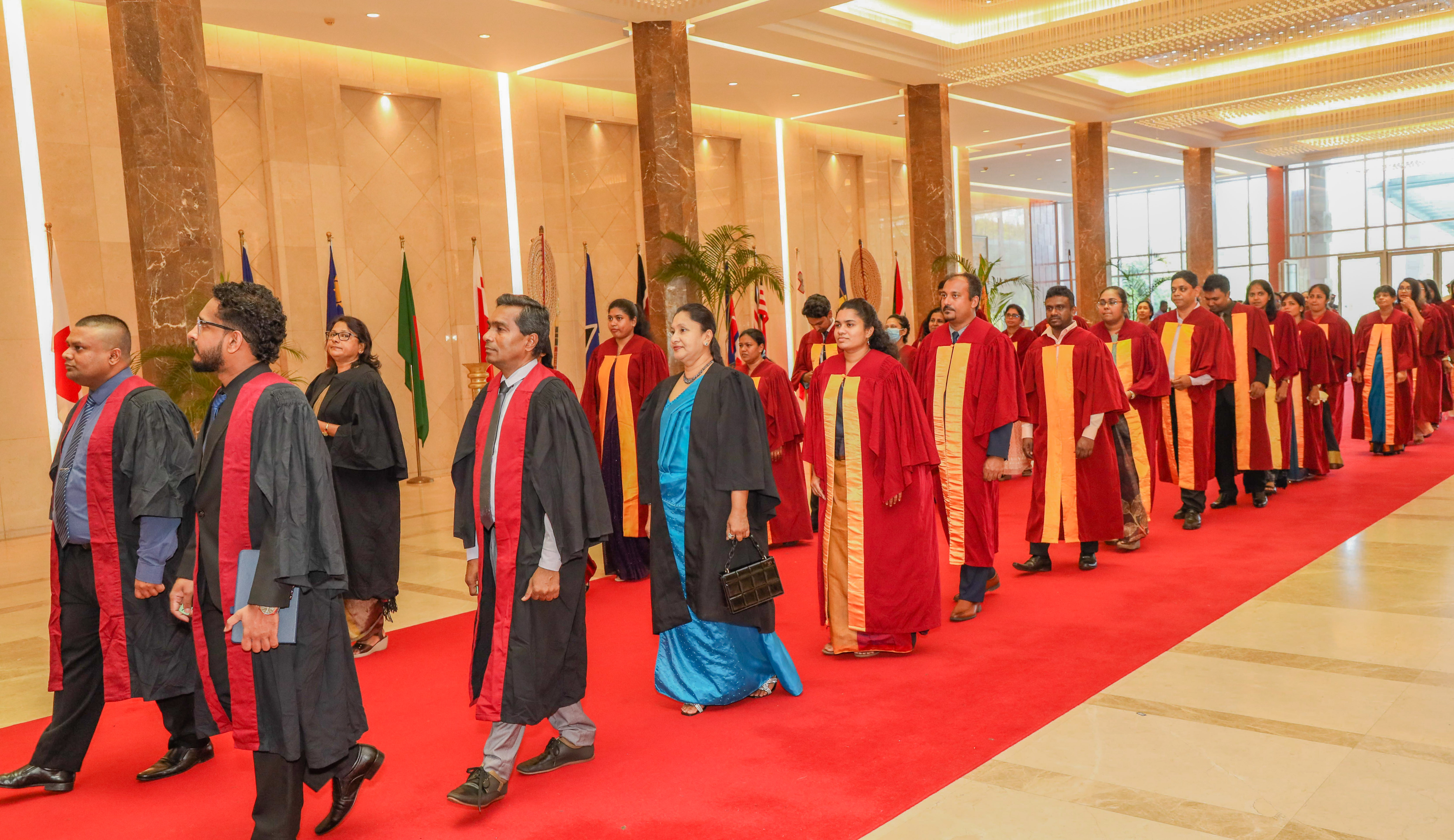 The convocation ceremony consisted of 03 sessions. During the 1st session, 116 graduands of the Bachelor of Science Honours Degree, 15 graduands of the Bachelor of Science Honours Degree in Environmental Conservation & Management, 51 graduands of the Bachelor of Science Honours Degree in Information Technology, 40 graduands of the Bachelor of Science Honours Degree in Management and Information Technology, 47 graduands of the Bachelor of Science Honours Degree in Software Engineering, 64 graduands of the Bachelor of Science Honours Degree in Environmental Conservation and Management, 07 graduands of the Bachelor of Science Degree in Information Technology, 04 graduands of the Bachelor of Science Degree in Management and Information Technology, and 47 graduands of the Bachelor of Science in Physics and Electronics Degree, offered by the Faculty of Science, and 01 graduand of the Bachelor of Engineering Technology (BET) Honours Degree and 01 graduand of the Bachelor of Information and Communication Technology (BICT) Honours Degree, offered by the Faculty of Computing and Technology, were conferred.